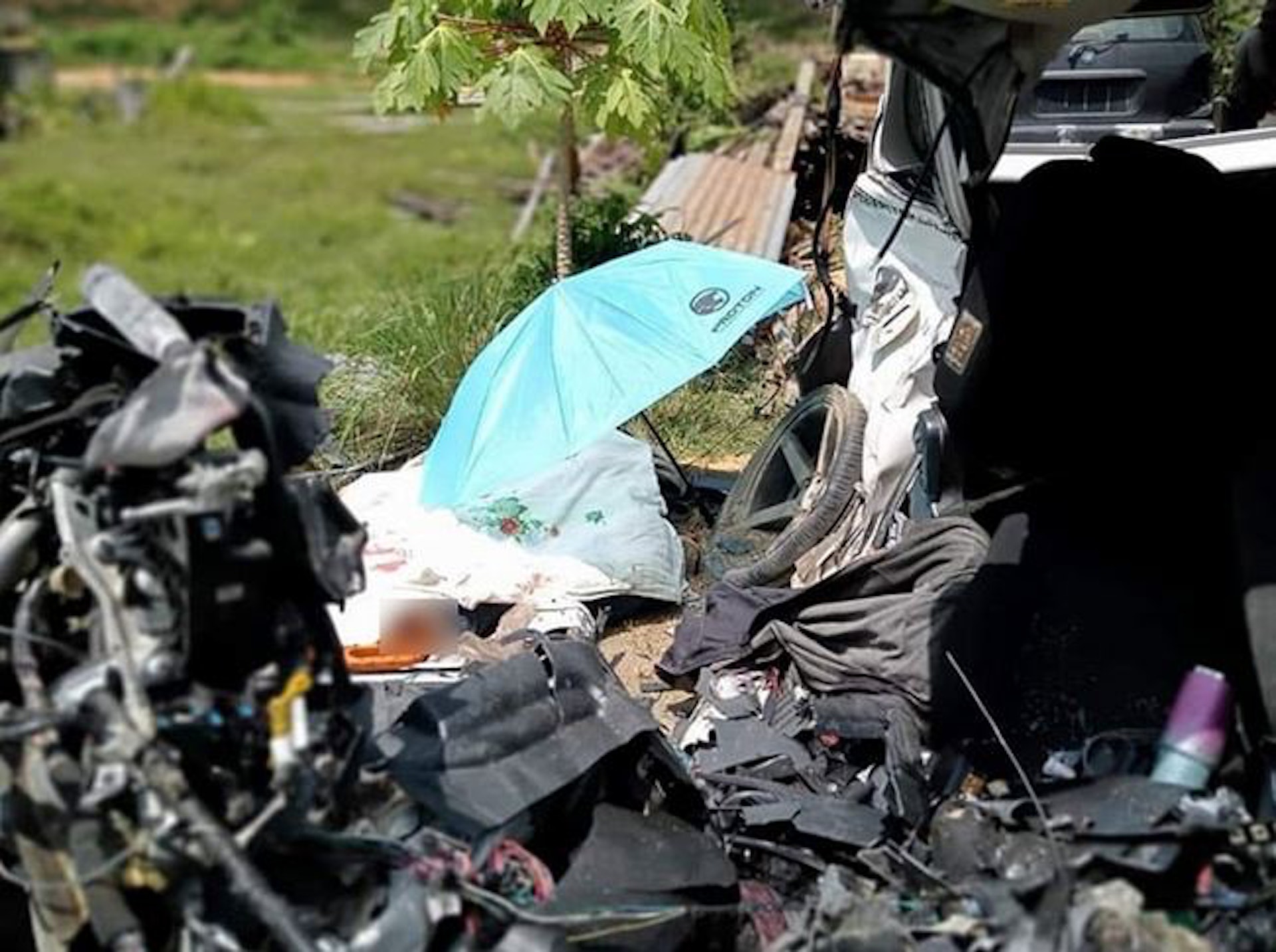 私家車上的費沙阿茲曼和哈莎伊斯邁當場死亡,其13歲兒子莫哈末丹尼爾則重傷,送院治理。(網上圖片)$ K( j7 Y' Y/ k