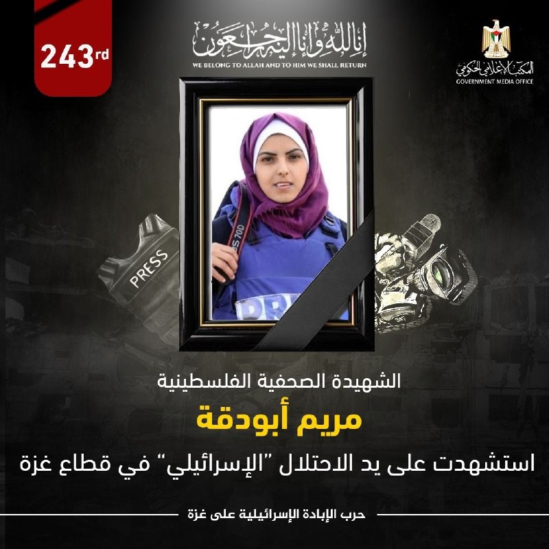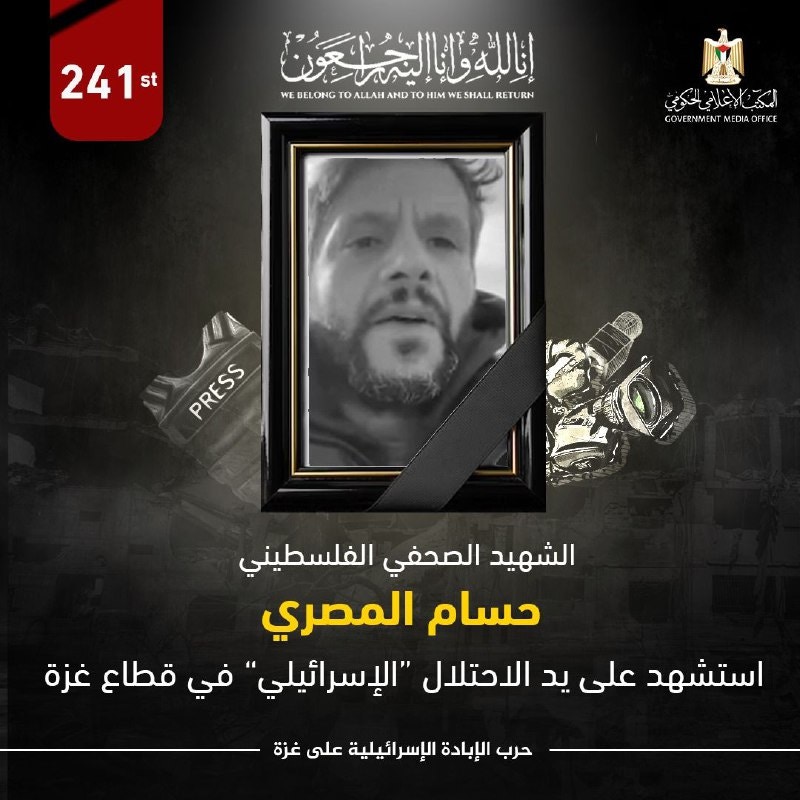 4 O4 E& K& P6 i- A$ g! ~tvb now,tvbnow,bttvb以色列周一(25日)襲擊加沙南部的納賽爾醫院,造成至少14人死亡,當中包括4名外媒記者。這些遇難記者分別是路透社攝影記者Hussam al-Masri、半島電視台攝影記者Mohammed Salama、美國全國廣播公司(NBC)記者Moaz Abu Taha,以及為美聯社與「獨立阿拉伯」提供內容的記者Mariam Abu Daqa。(加沙政府新聞辦公室)