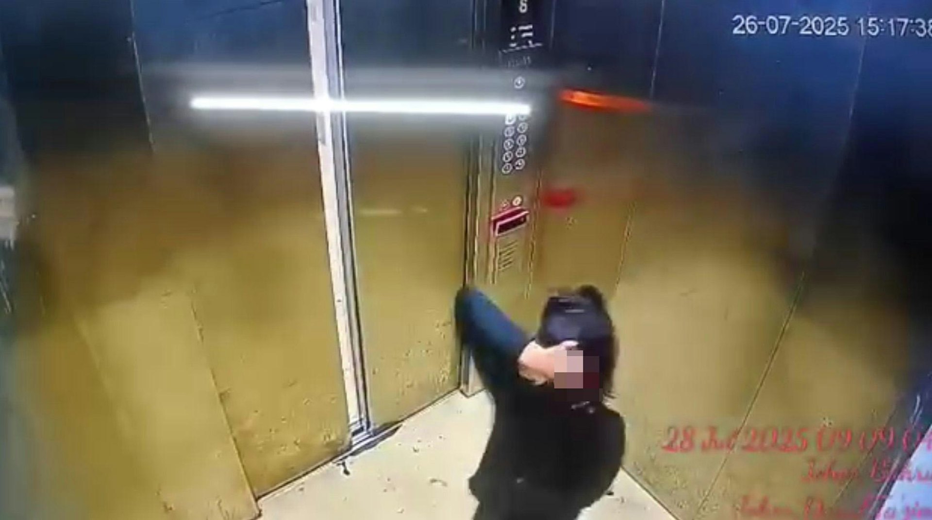 # o& r- P* h8 N7 _ T4 y p& t女童滿頭鮮血地步入升降機。(Facebook影片截圖)