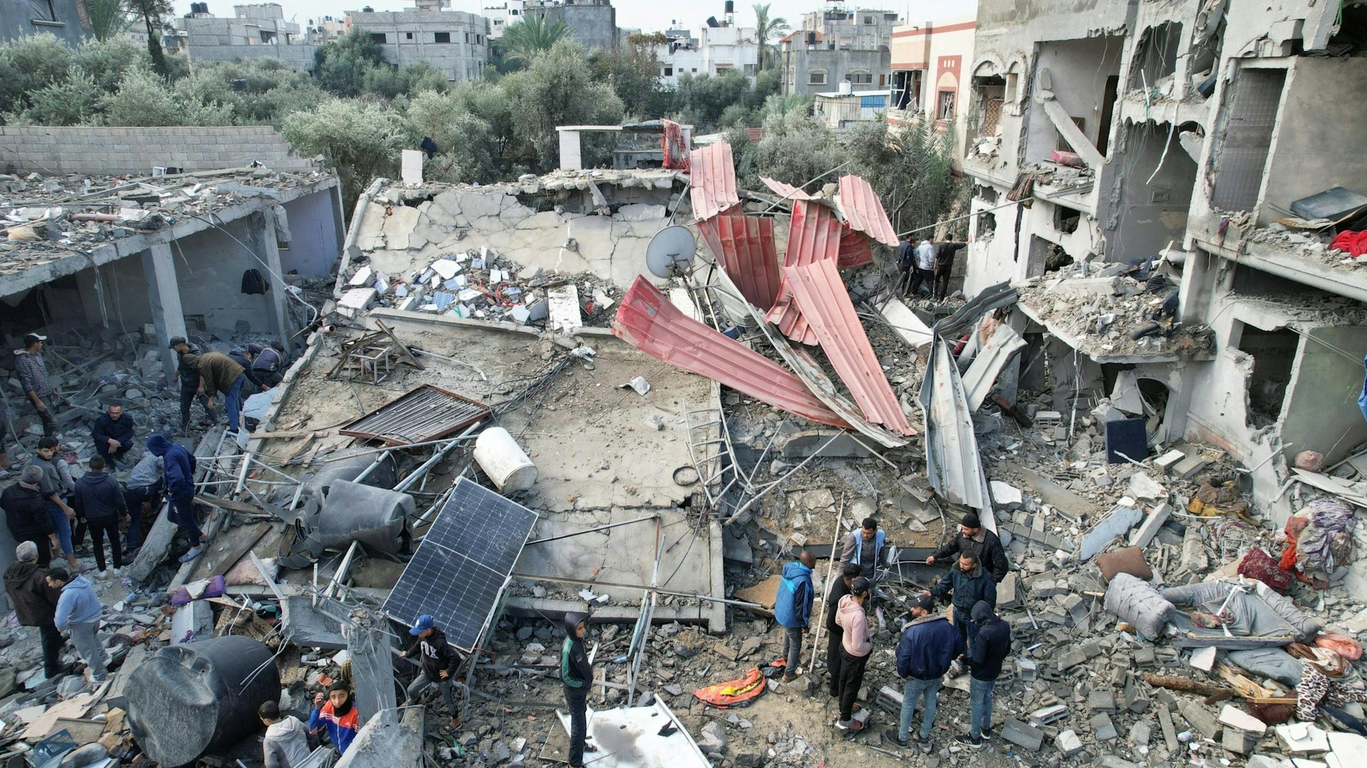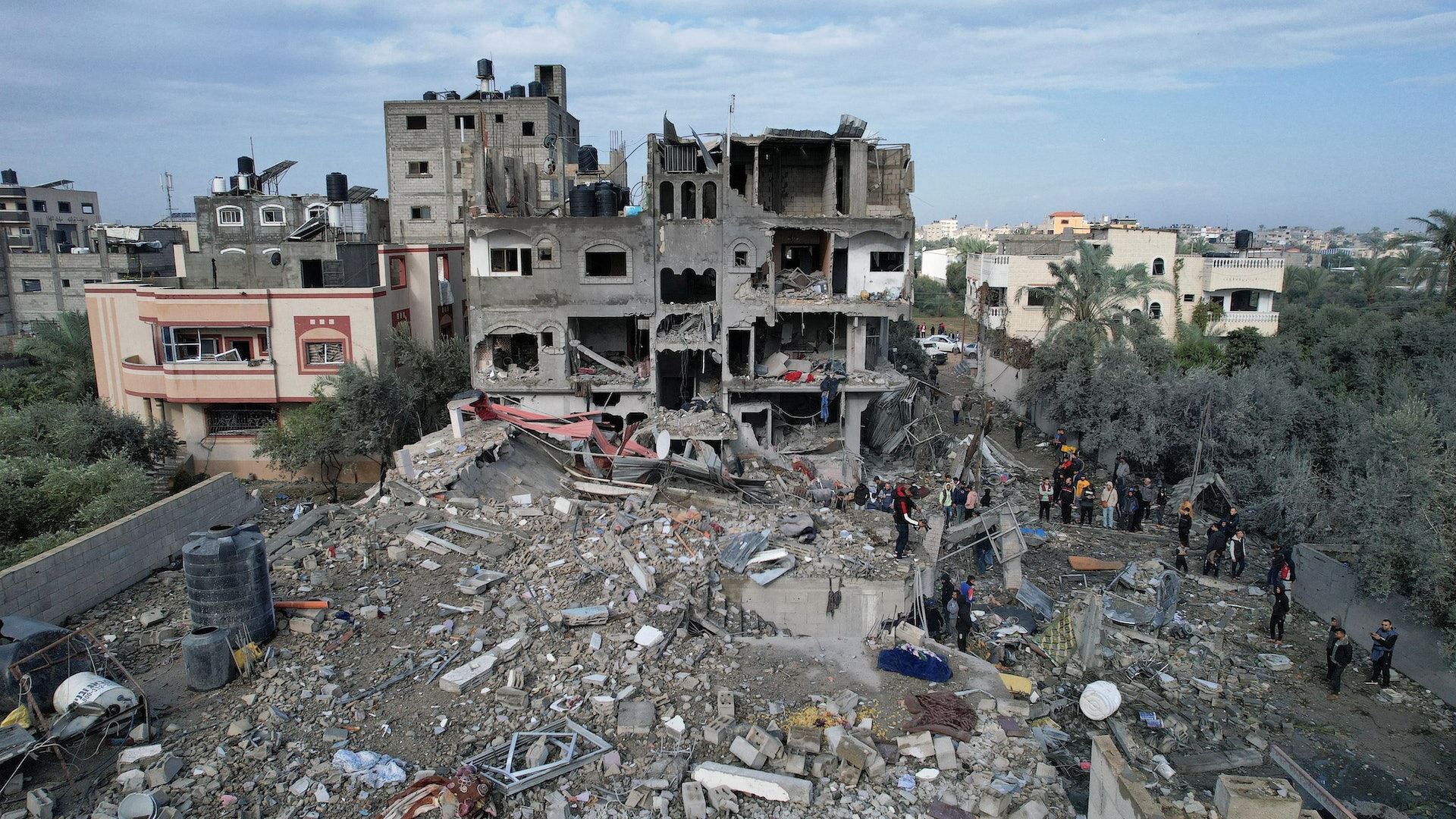2023年12月25日,位於加沙中部的邁加齊難民營(Maghazi Camp)於前一天遭以軍空襲,多棟建築物淪為廢墟。(Reuters)