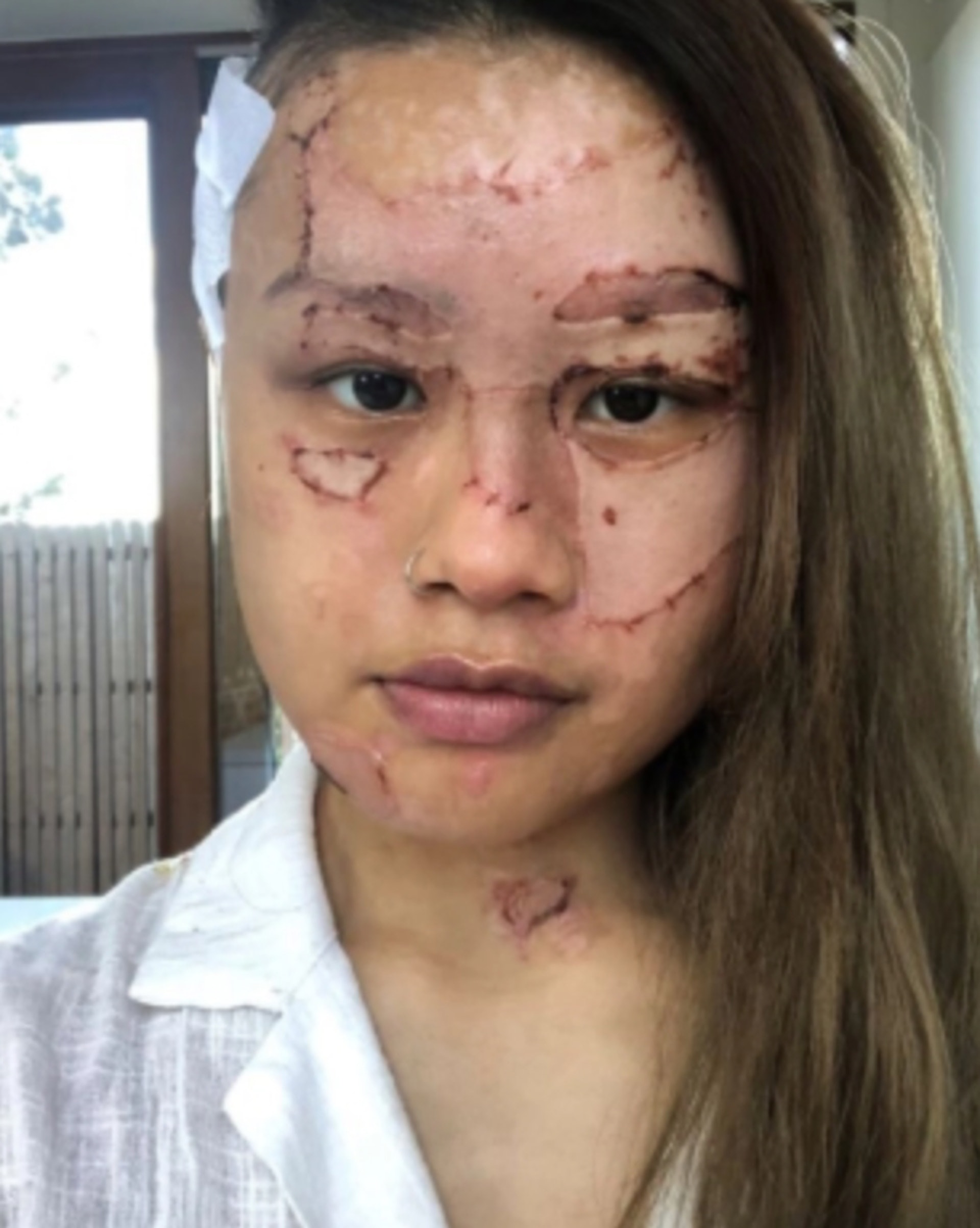 意外導致她臉部嚴重燒傷,大半張臉幾乎全毀。(IG@charlenechew)