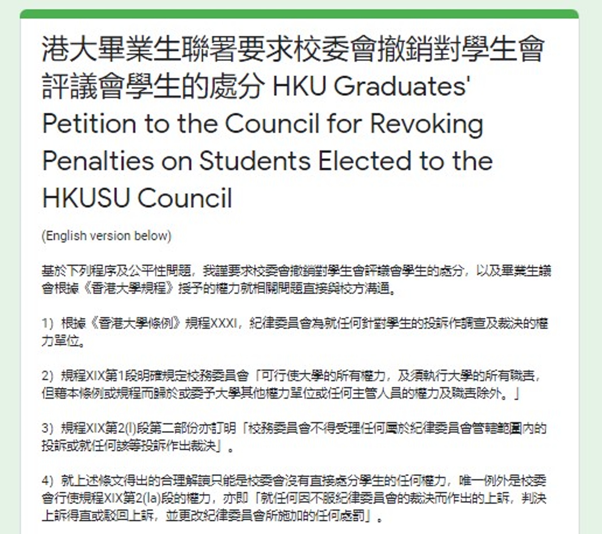 ) }% X8 H, {+ j; h! n而今日再有港大畢業生發起聯署,要求校委會撤銷對學生會評議會學生的處分。聯署聲明指出,基於《香港大學條例》列明的程序及公平性問題,要求校委會撤銷對學生會評議會學生的處分,而畢業生議會期望按《香港大學規程》授予權力,直接與校方就事件溝通。tvb now,tvbnow,bttvb' c0 C0 M* U: V3 P/ j! H