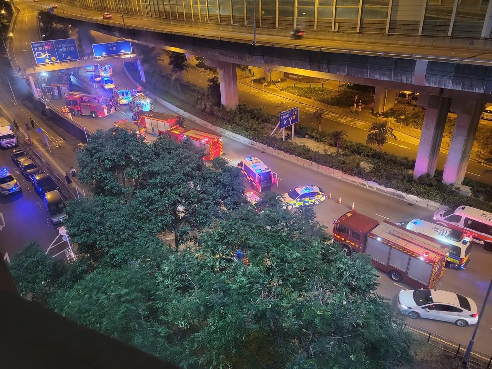1 |' k4 i! N% I' x; P: ?% K大埔公路大圍段昨晚(18日)發生嚴重車禍,一輛九巴翻側致最少1死逾10傷,涉事九巴車頭嚴重損毀,車頭玻璃碎裂,消防人員於現場設立傷者分流區,部分傷者由救護人員以擔架床抬上救護車,其中兩名傷者已被送往威爾斯醫院救治。www2.tvboxnow.com7 @+ C) Q0 `4 n: a) U6 Z5 _( j