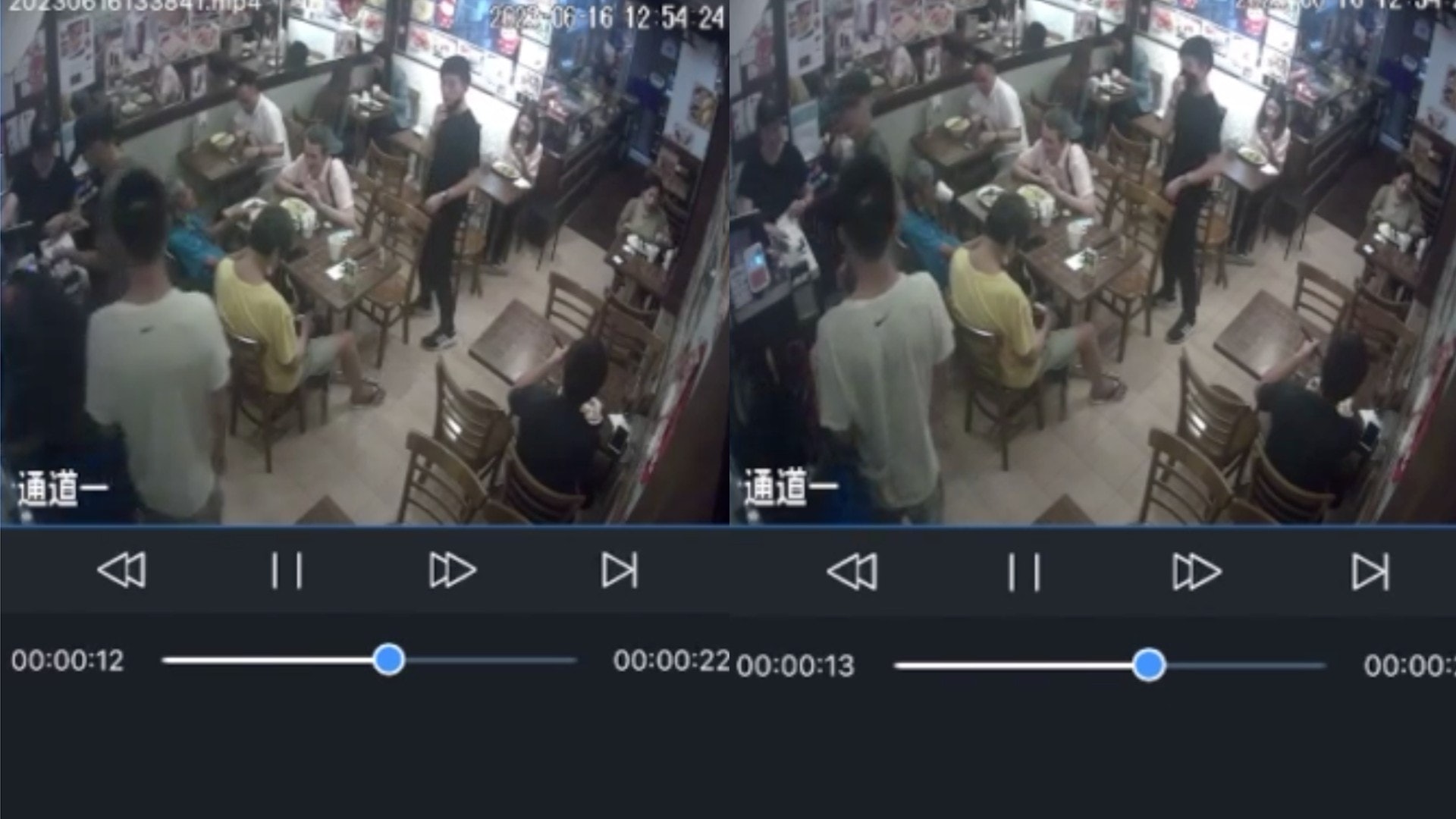 : R4 U; c6 f, i) B+ p白衣男手持鐵夾曾走進餐廳,向送貨員兜搭。( 閉路電視片段截圖 )