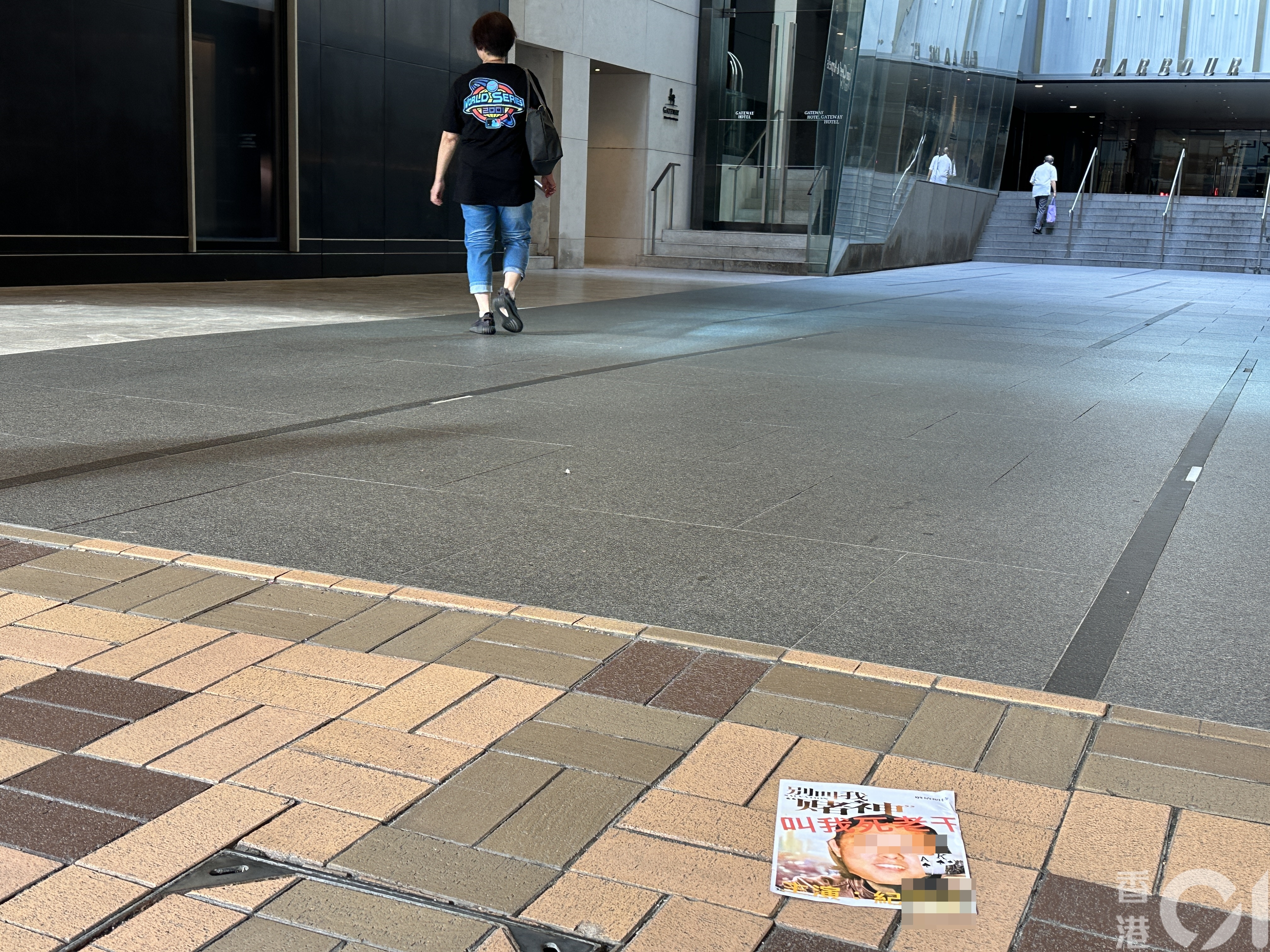 & [3 x* }1 Q: z- i尖沙嘴海港城外今日(5日)清晨7時許,出現兩張追債海報。(劉鑫梅攝)