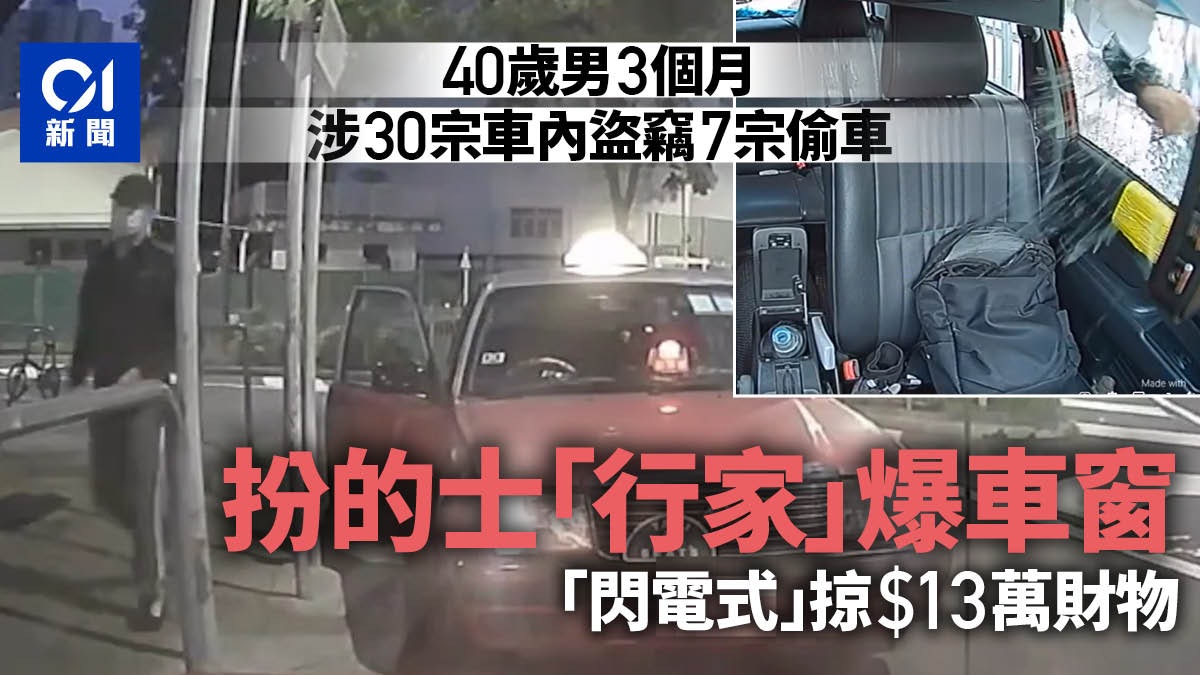 近月爆窗的士盜竊頻仍,多次有「行家」向停泊路邊的士下手,以硬物擊碎車窗玻璃後「閃電式」偷走車內財物。警方經調查和分析情報後,前日(11月29日)拘捕一名40歲本地男子,相信他與今年9至11月九龍、新界最少30宗的士及私家車竊盜案及7宗偷車案有關,包括曾偷取一輛的士協助犯案,偷走的財物總值達13萬元。被捕男子正被扣查。