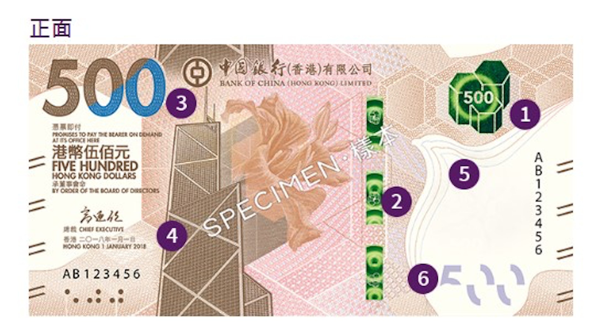 * C3 E, e& x6 C6 o8 K根據發鈔銀行中國銀行(香港)有限公司網頁,500港元鈔票長158毫米、寬79毫米,正面有六角形線條襯托紫荊花及中銀大廈,右邊則留白出飛鳥側影。www2.tvboxnow.com, S/ D0 i( R. |
