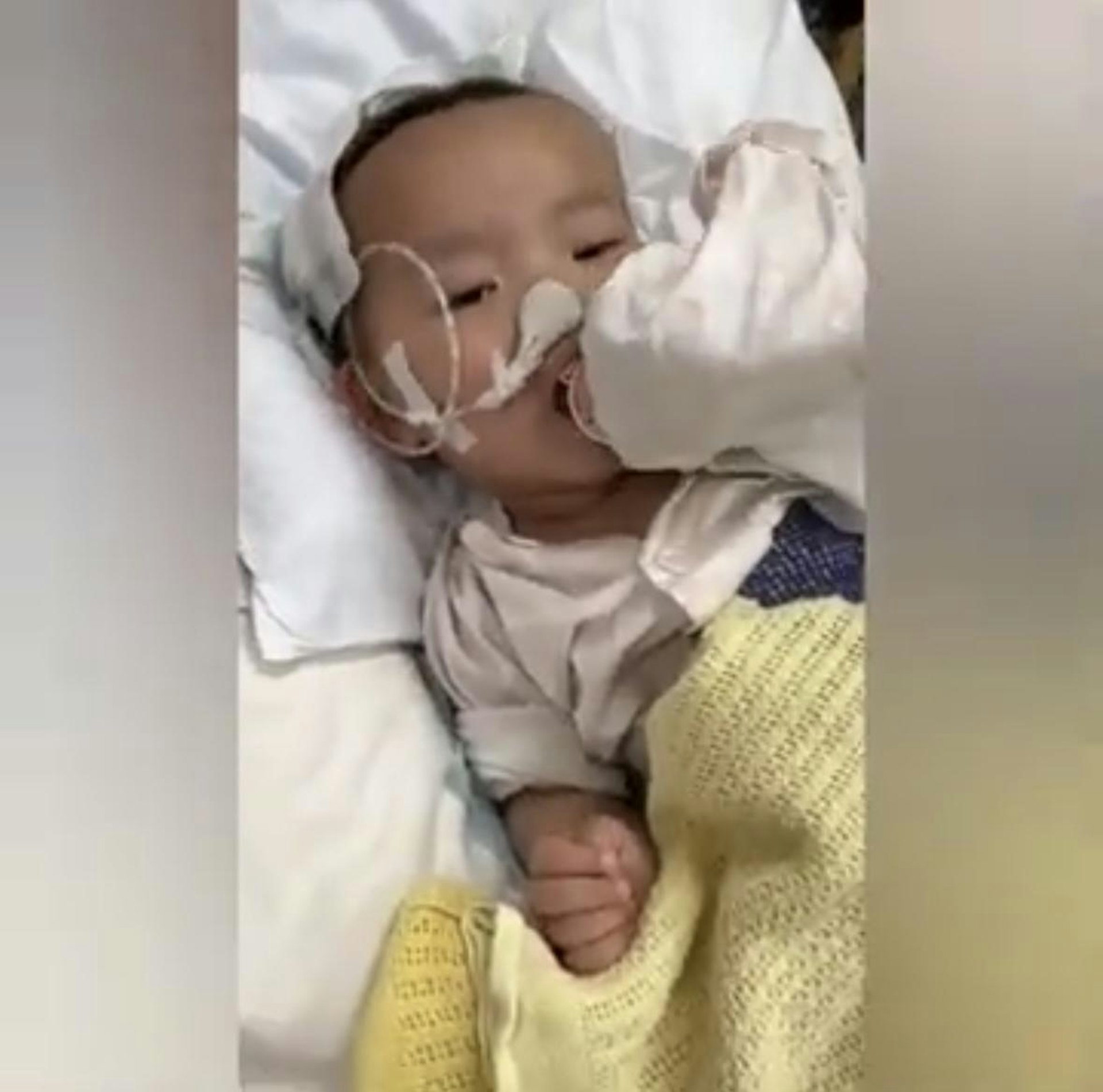 : S4 g2 [) w5 v: W1 L小雪兒進行腦部手術後的近況。(香港關懷力量YouTube截圖)