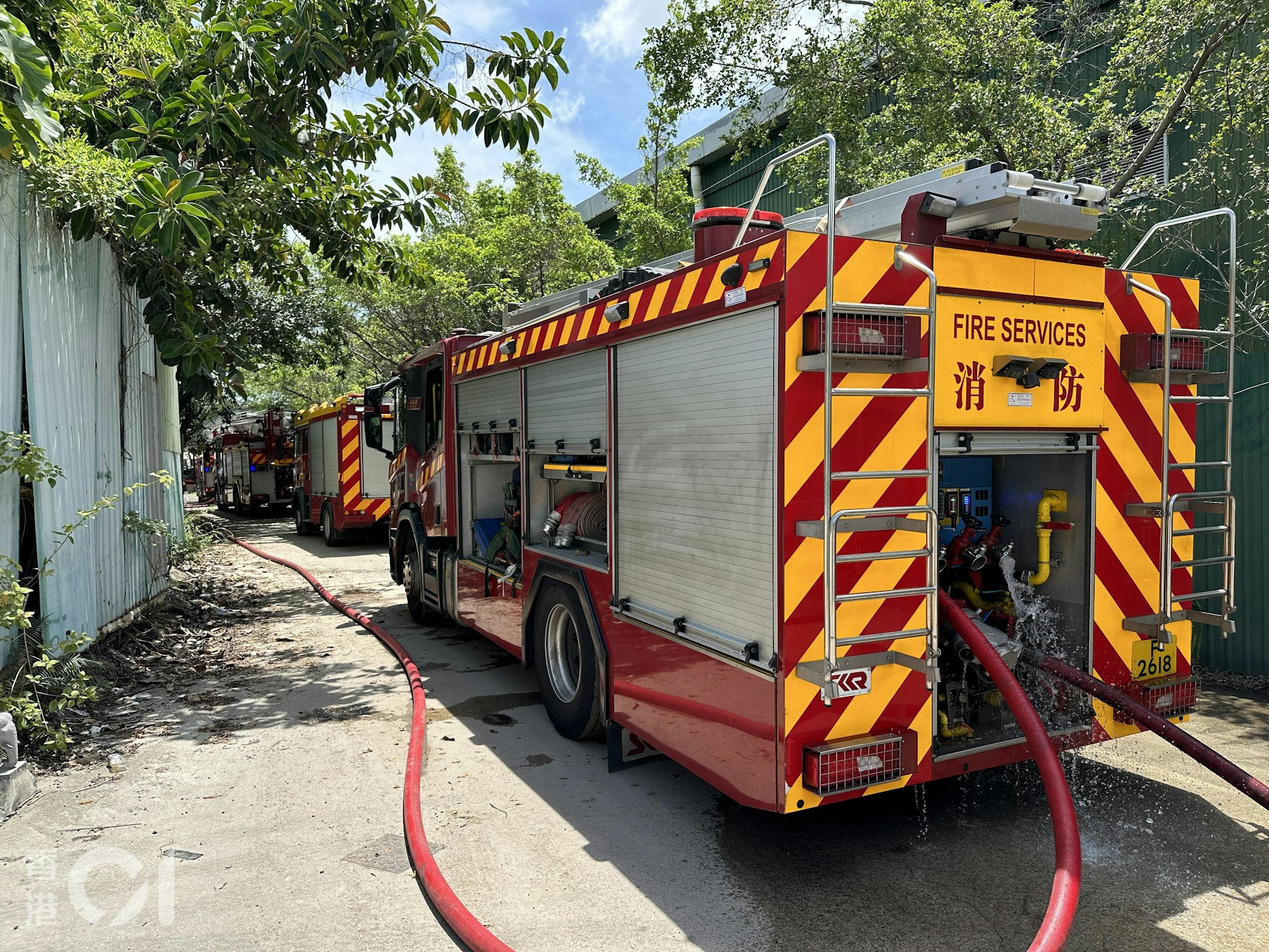 + ^; A( C6 B. y' ^7 C5 i消防到場動用一喉一煙帽隊灌救。(黃學潤攝)