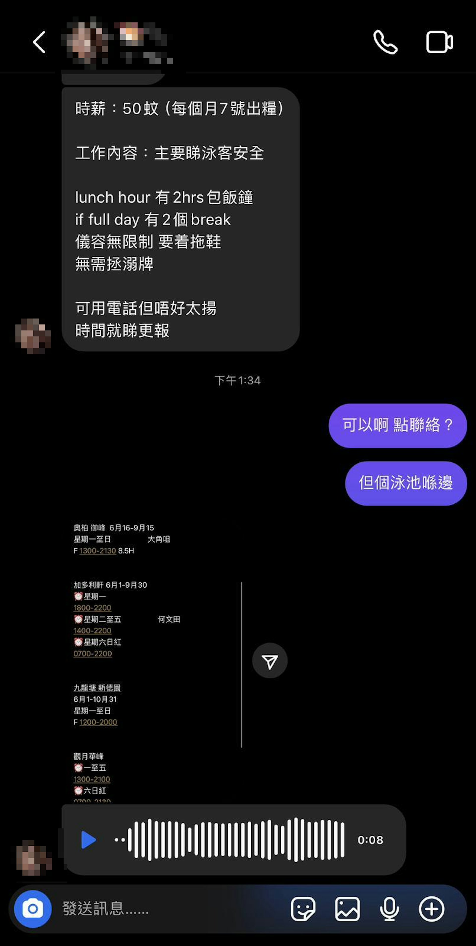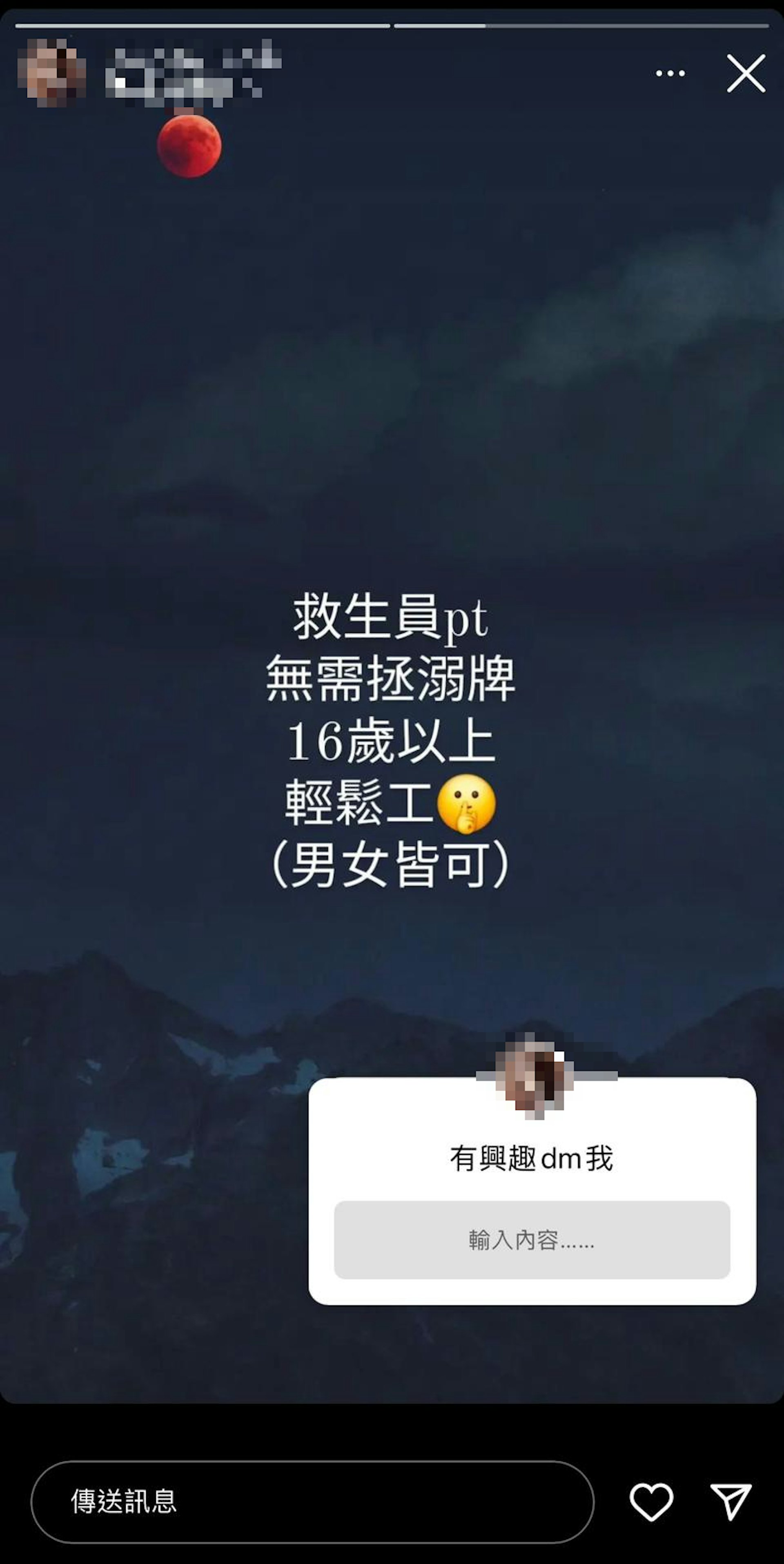 5 U& p$ I. a# |9 C3 \: iTVBNOW 含有熱門話題,最新最快電視,軟體,遊戲,電影,動漫及日常生活及興趣交流等資訊。King表示,見過不少判頭或二判在Telegram或社交媒體群組招聘救生員,更公然寫道「無需拯溺牌」。(King提供)tvb now,tvbnow,bttvb2 E7 l6 T8 d/ P5 N% C9 @