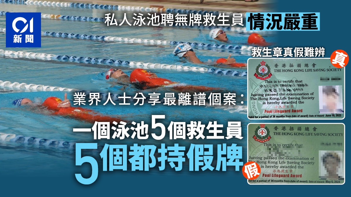 然而有業界人士指出,許多泳池公司判頭選擇聘請無牌救生員。King(化名)現時是泳池公司「二判」,負責為某些大規模的泳池公司招聘救生員,現已入行16年。據他觀察,行内請無牌救生員的問題自五六年前已存在,近年則更爲猖狂,這個情況主要發生在私人管理的泳池。「宜家基本上我見到10個(私人泳池)救生員有3到4個都係無牌。我聼過最離譜,一個泳池5個救生員,5個都係持假牌。」