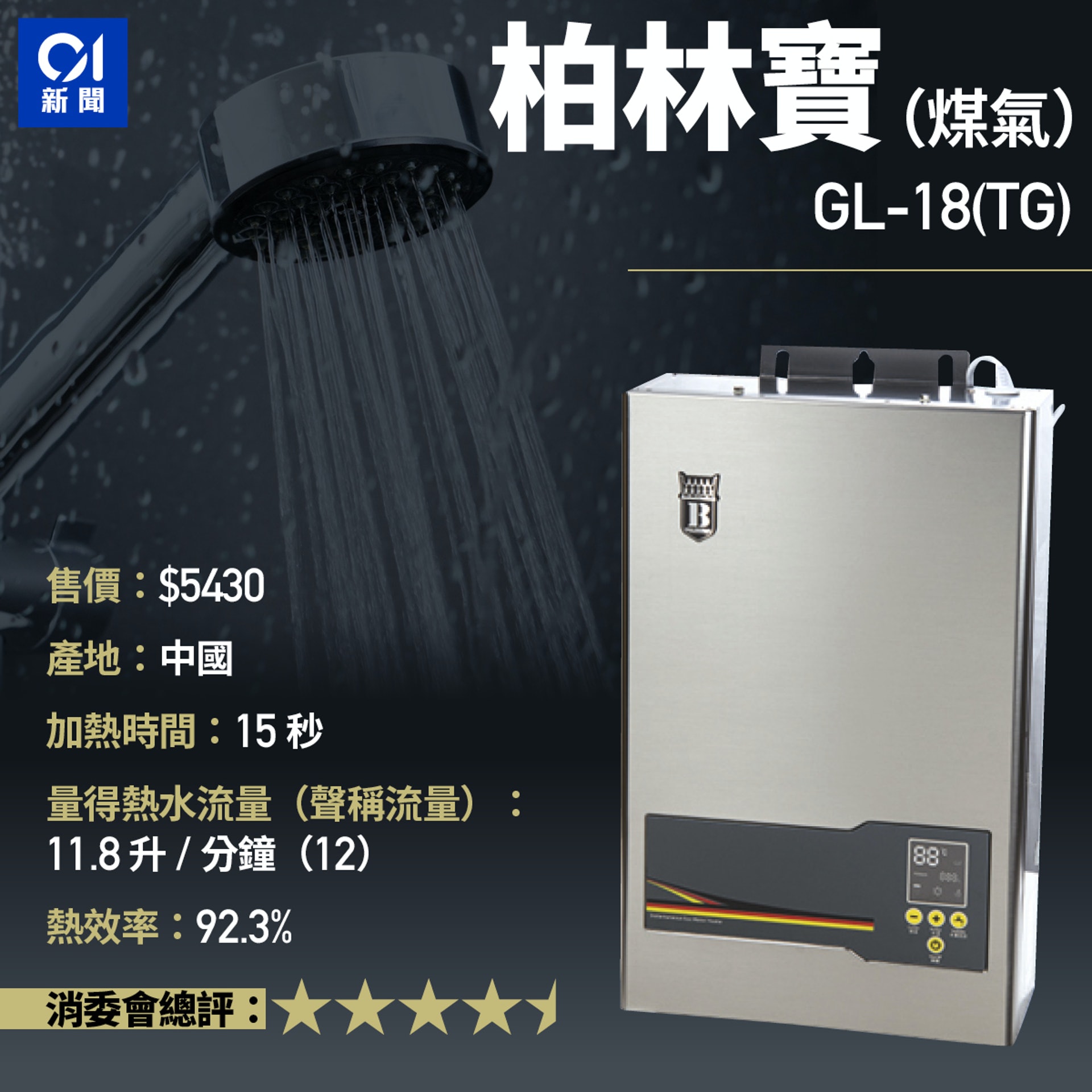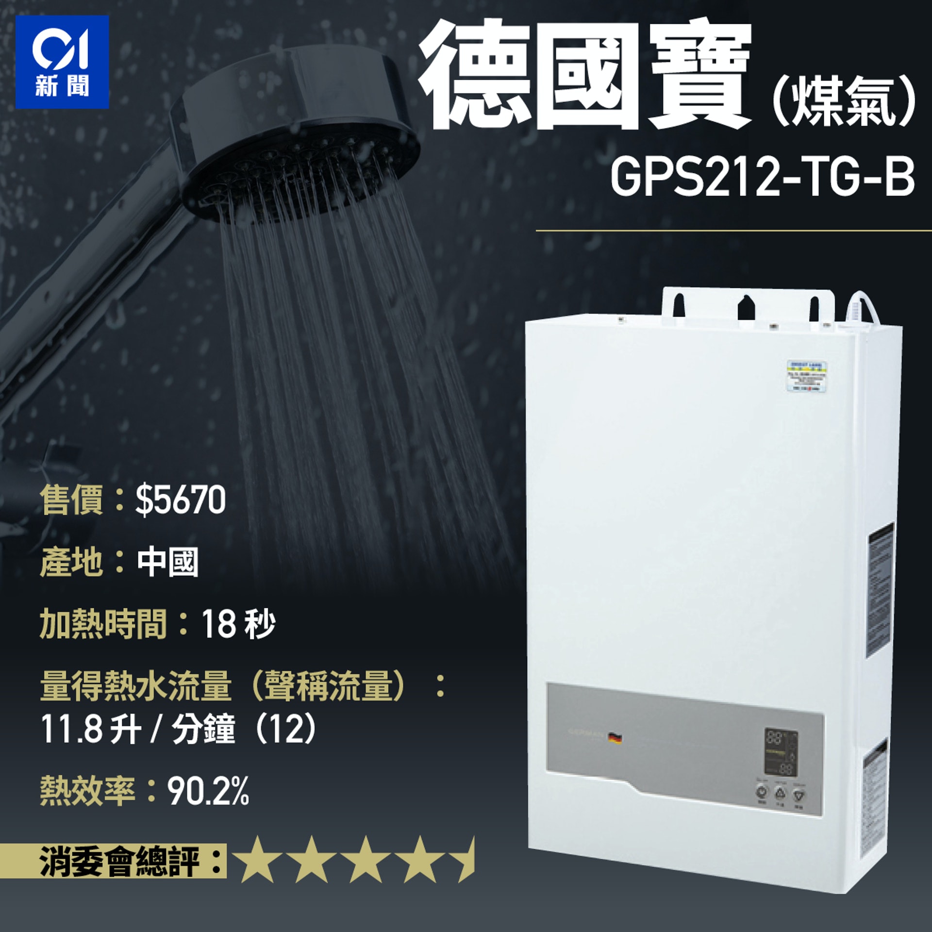 4星半:西德寶GERMANWEST GWH-6S;$3,480;花灑式 (單膽) 額定容量14升至23升。