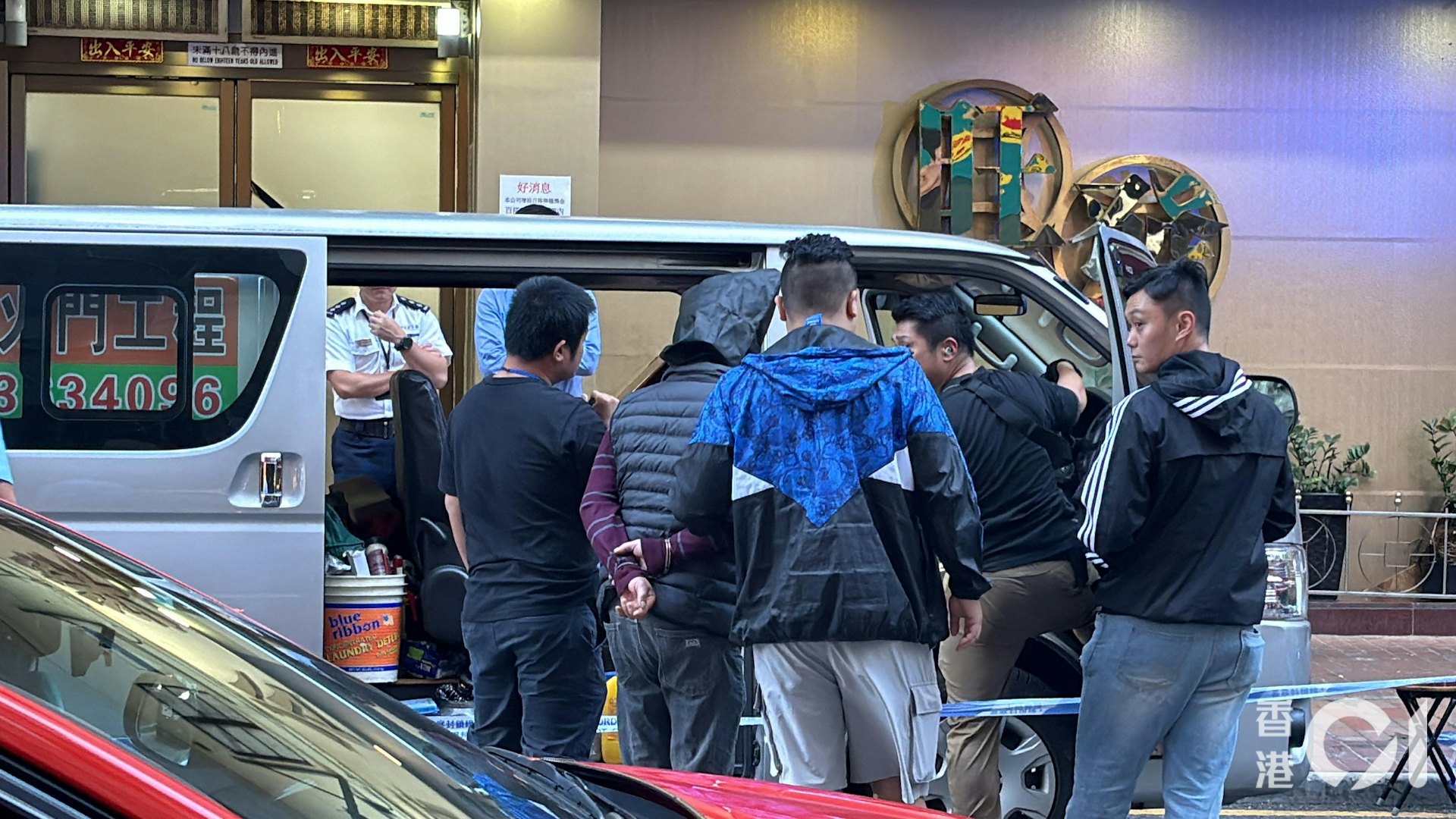 現場所見,客貨車上被捕的一男一女黑布蒙頭在現場協助調查,據知兩人為67歲姓羅裝修工程老闆及其60歲姓侯女朋友。警方調查後,相信死者是一名叫「張長有」的中國籍男子,懷疑他為裝修黑工。