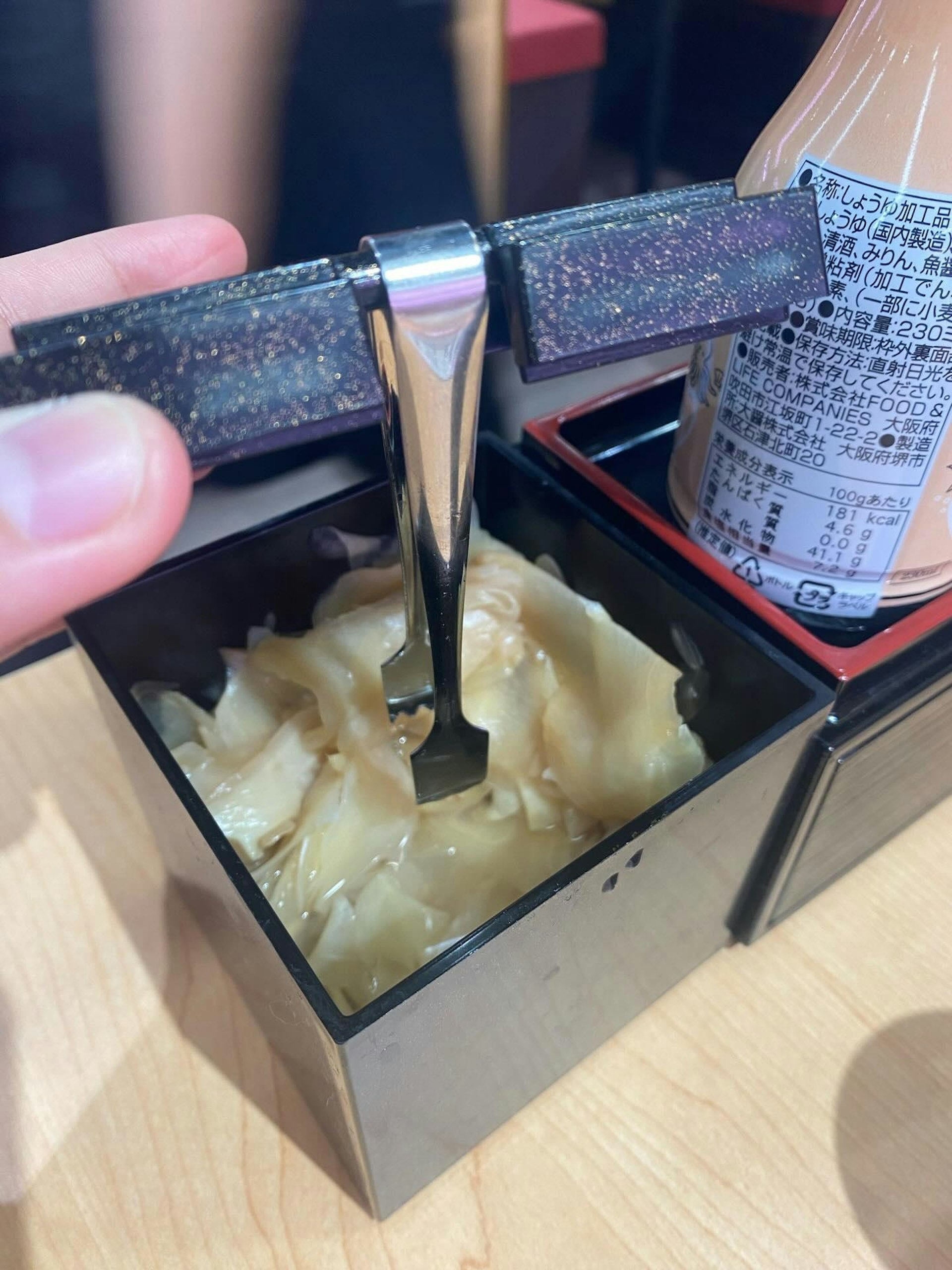 5 m; D, a( q" M0 Z" r g壽司郎提供免費薑片予食客,並連夾子放置於桌上任食客自取。(Threads圖片)www2.tvboxnow.com8 \: U- `* }. u" P8 d& i: Y0 Q