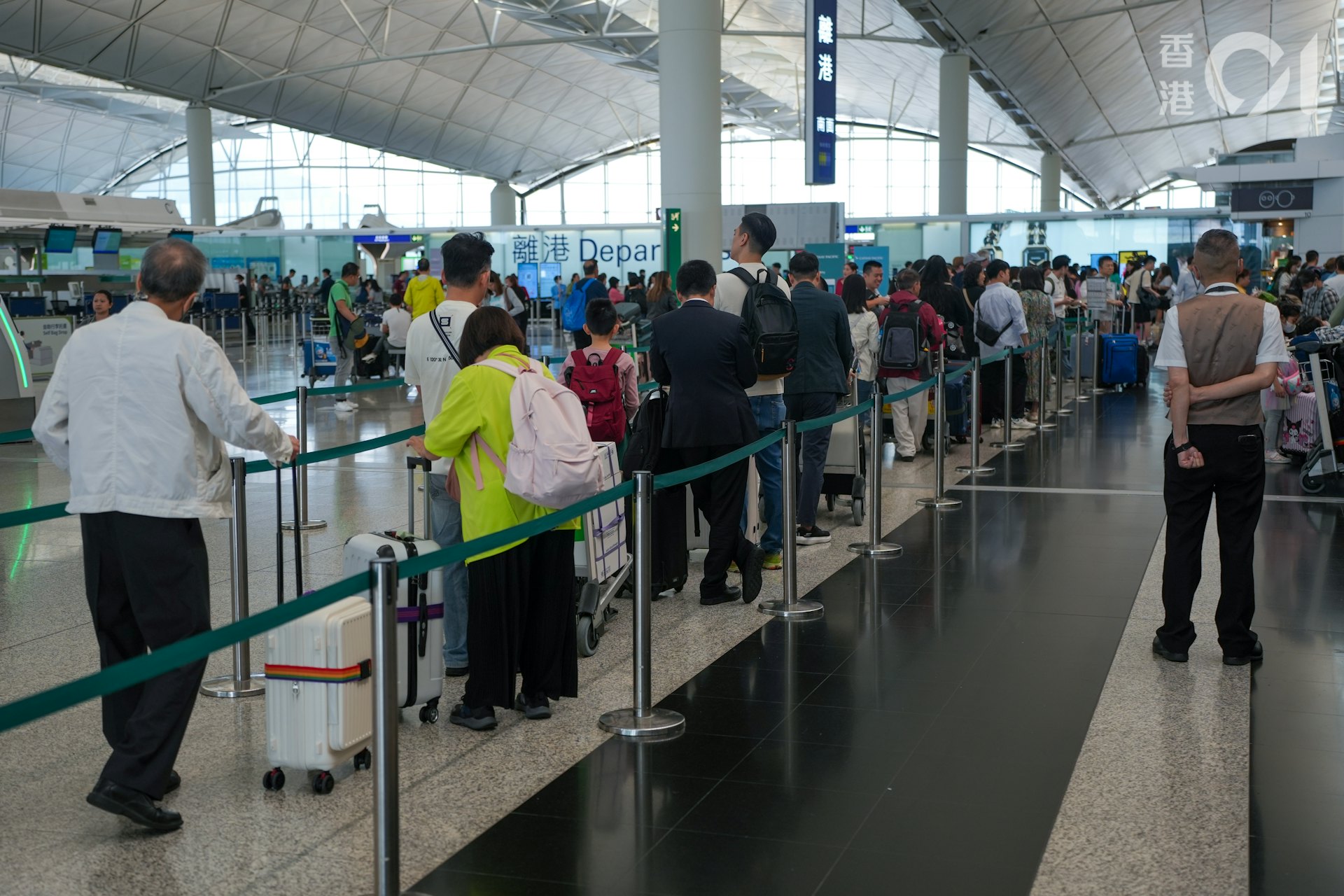 / @; V2 [2 ~7 V" u5 k0 M" z/ R復活節長假期首日的4月18日,不少港人選擇外遊。機場離港大堂人頭湧湧。有往日本的市民稱擔心未來或會發生地震,「所以嗱嗱臨去咗先」。(資料圖片/黃浩謙攝)# ?1 j5 C& }; |8 ?& C3 U% p