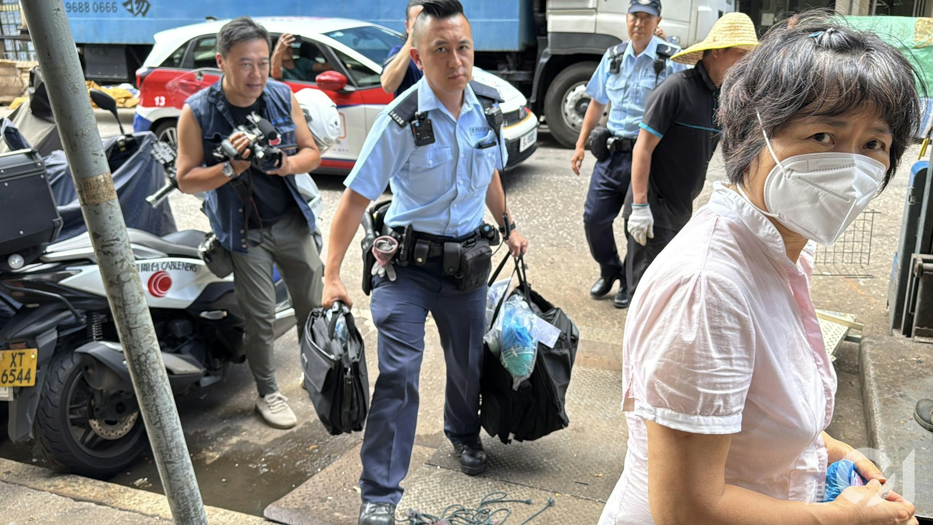 深水埗福榮街福星樓一對姐弟倒斃劏房內,警員到場調查。(林振華攝)