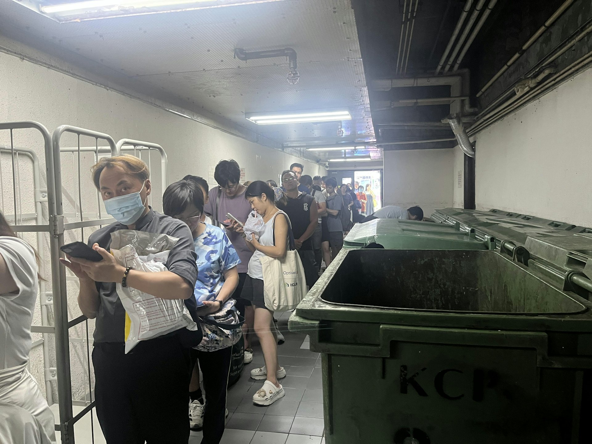 ; W" g2 F0 K; N) |# w @tvb now,tvbnow,bttvb今晚7時許,葵涌廣場3樓一個自提點有超過50人排隊。(賴卓盈攝)