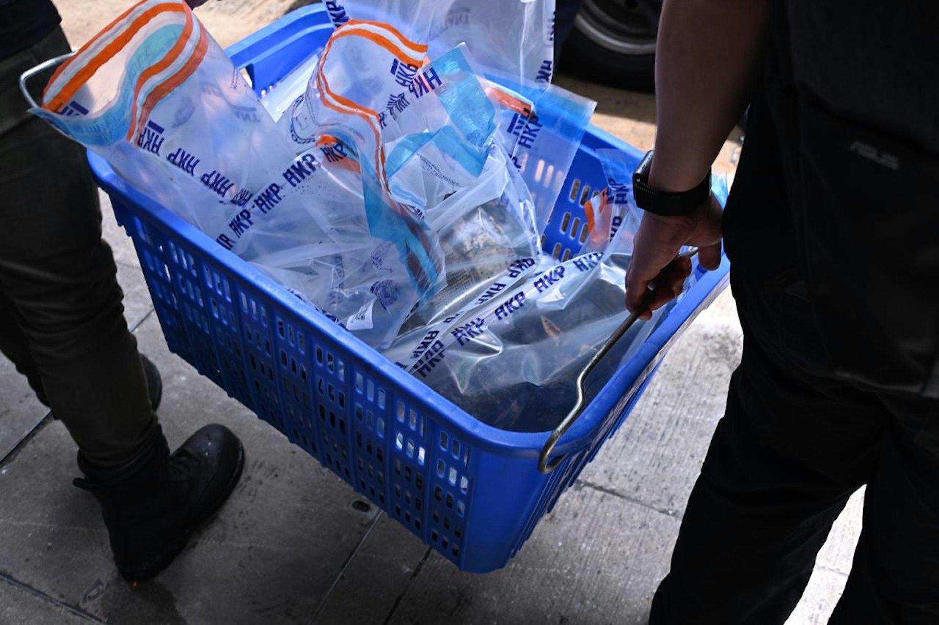 警方檢走一批疑是攝影器材化驗。(鄭嘉惠攝)