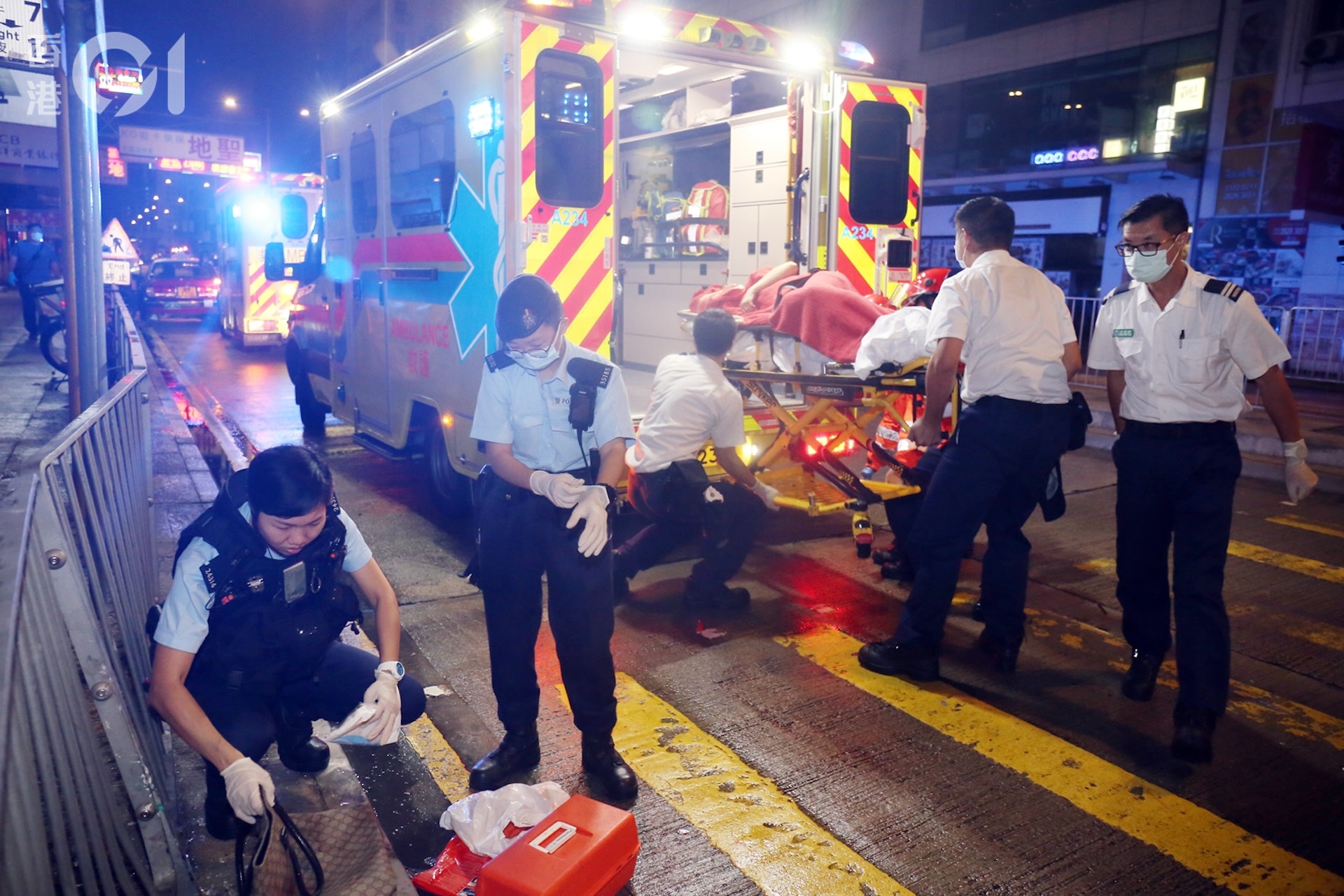 6 O+ T* Y6 J. S: |0 A, K7 M/ M女途人受傷倒地,由救護員急救再送院。(陳永武攝)% Y8 {3 i9 P4 Y6 Q3 J