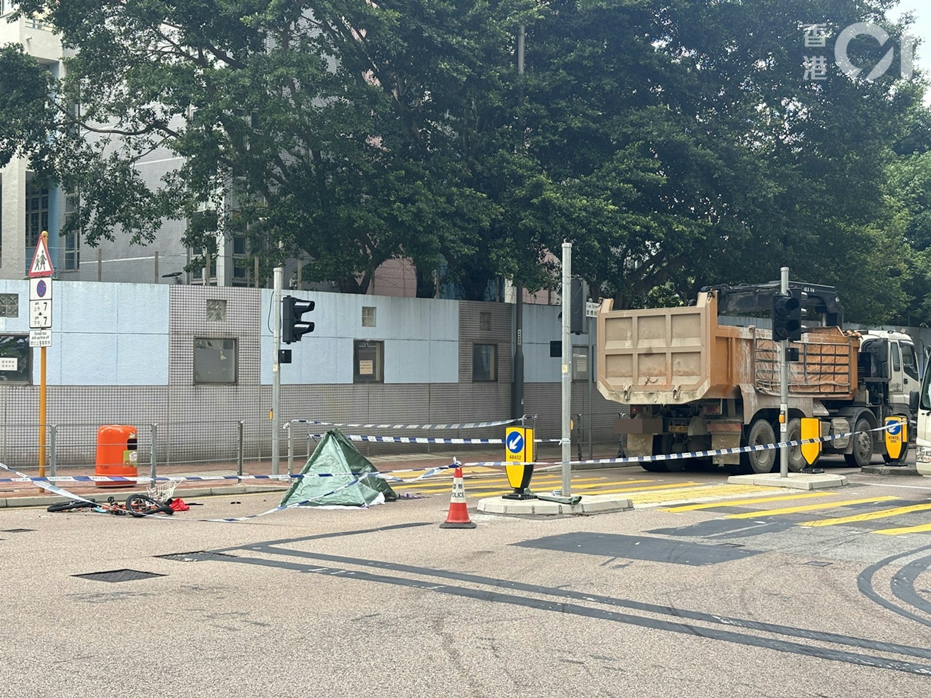 消息稱,案中兩車當時均由愛賢街左轉入愛禮街,該燈位於6月底新加設。現場圖片可見,死者倒臥燈位馬路中央的黃色行人輔助線旁,人員架起帳篷將死者遺體遮蓋;旁邊一輛單車倒地,嚴重毀爛、車輪變形。
