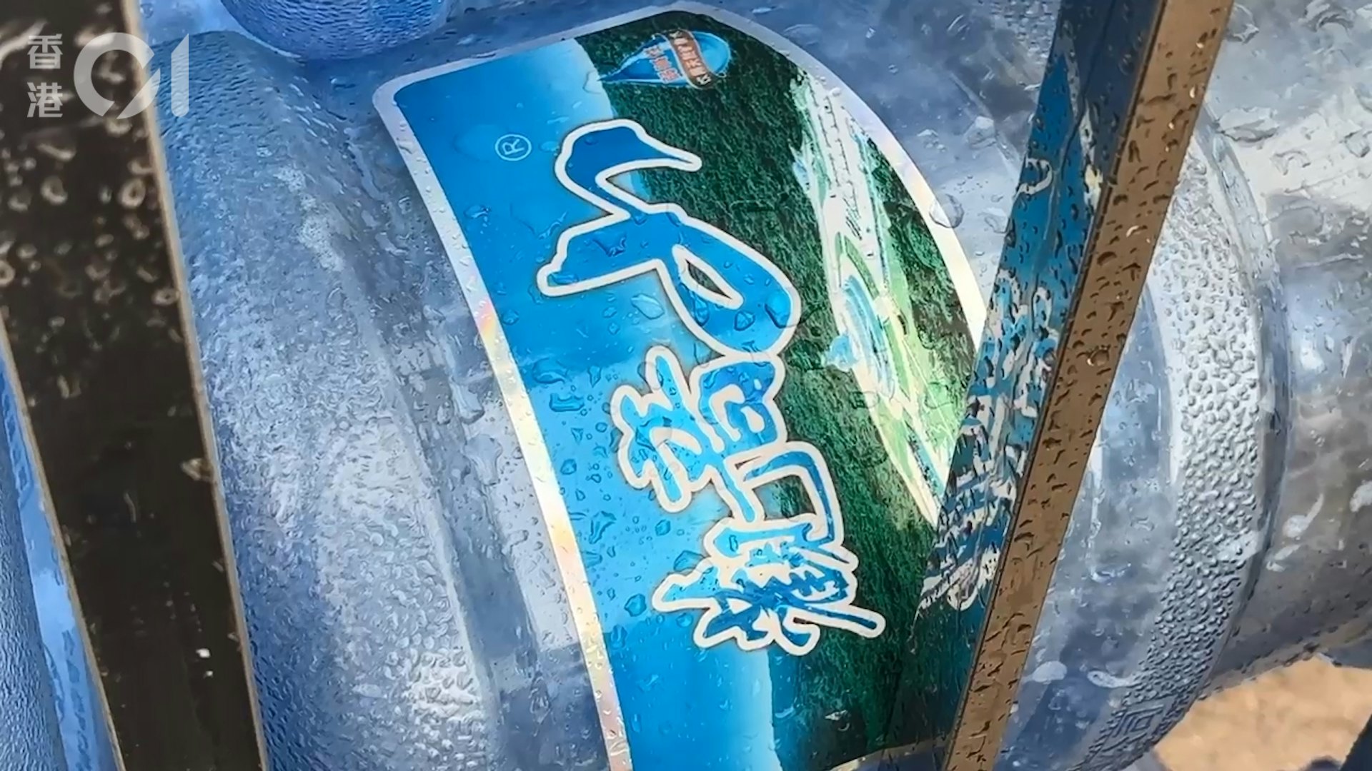東莞觀音山礦泉水廠疑似代工廠,存有多個品牌標籤的飲用水,其中一個標示為「觀音山」。(《香港01》記者攝)公仔箱論壇. T, |2 g5 L5 M