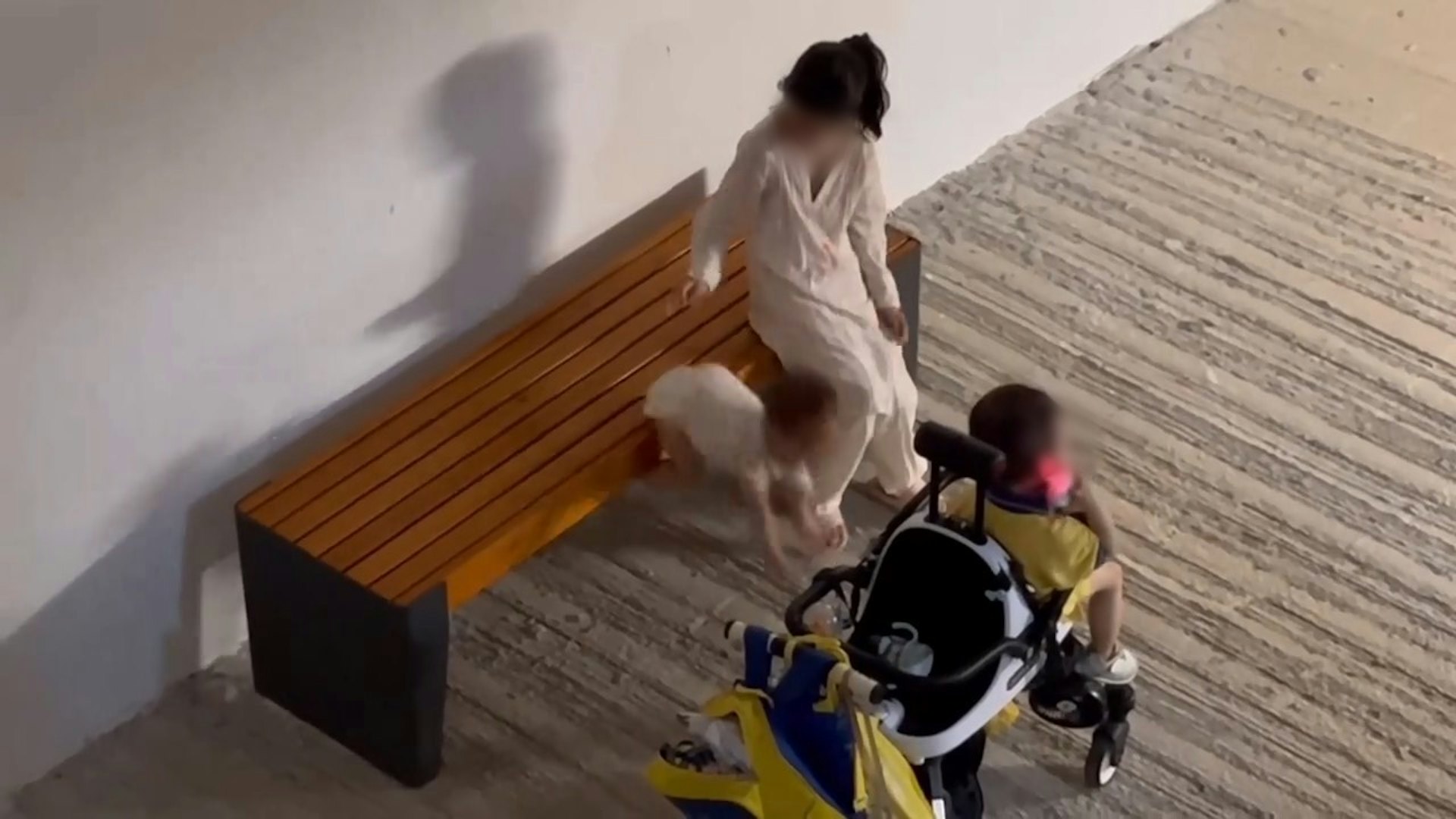 4 v/ x/ f. @ [3 `. n6 k坐在長椅的嬰兒不斷嚎哭,其間竟被女童從長椅上推落地。(網上影片截圖)www2.tvboxnow.com5 F0 u; w& f0 ^8 q& H4 P! s, f& a