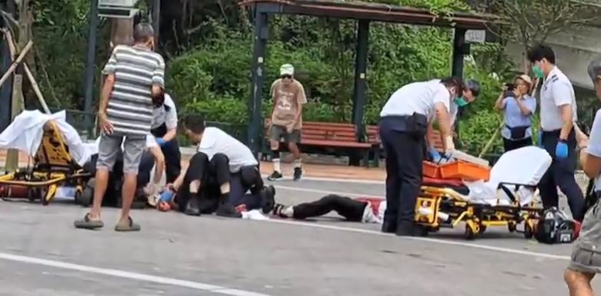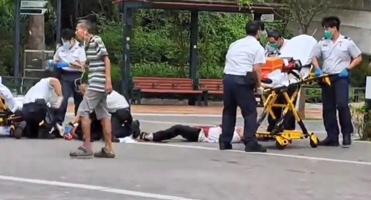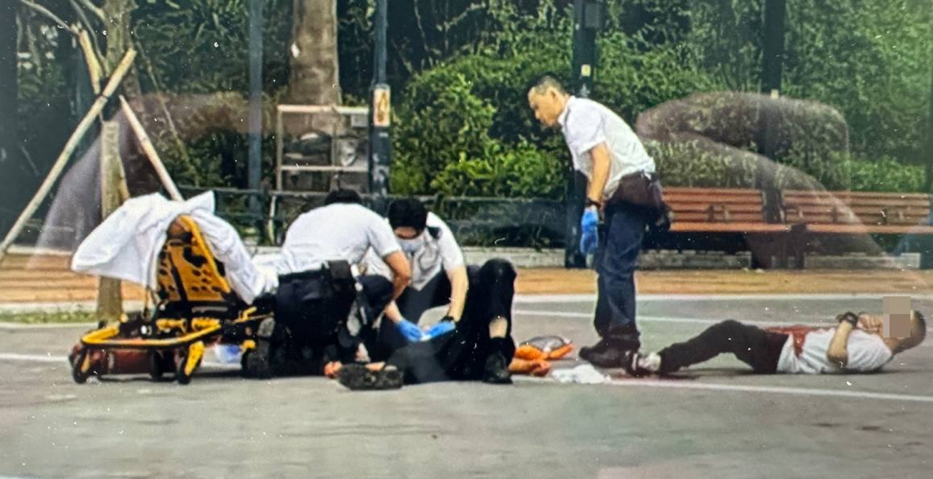 由讀者提供的片段可見,救護員正為一名傷者包紮,他疑似陷入昏迷,沒有反應;旁邊不遠處有另一名男子倒地,衣服染血,雙手按着自己的喉嚨止血。