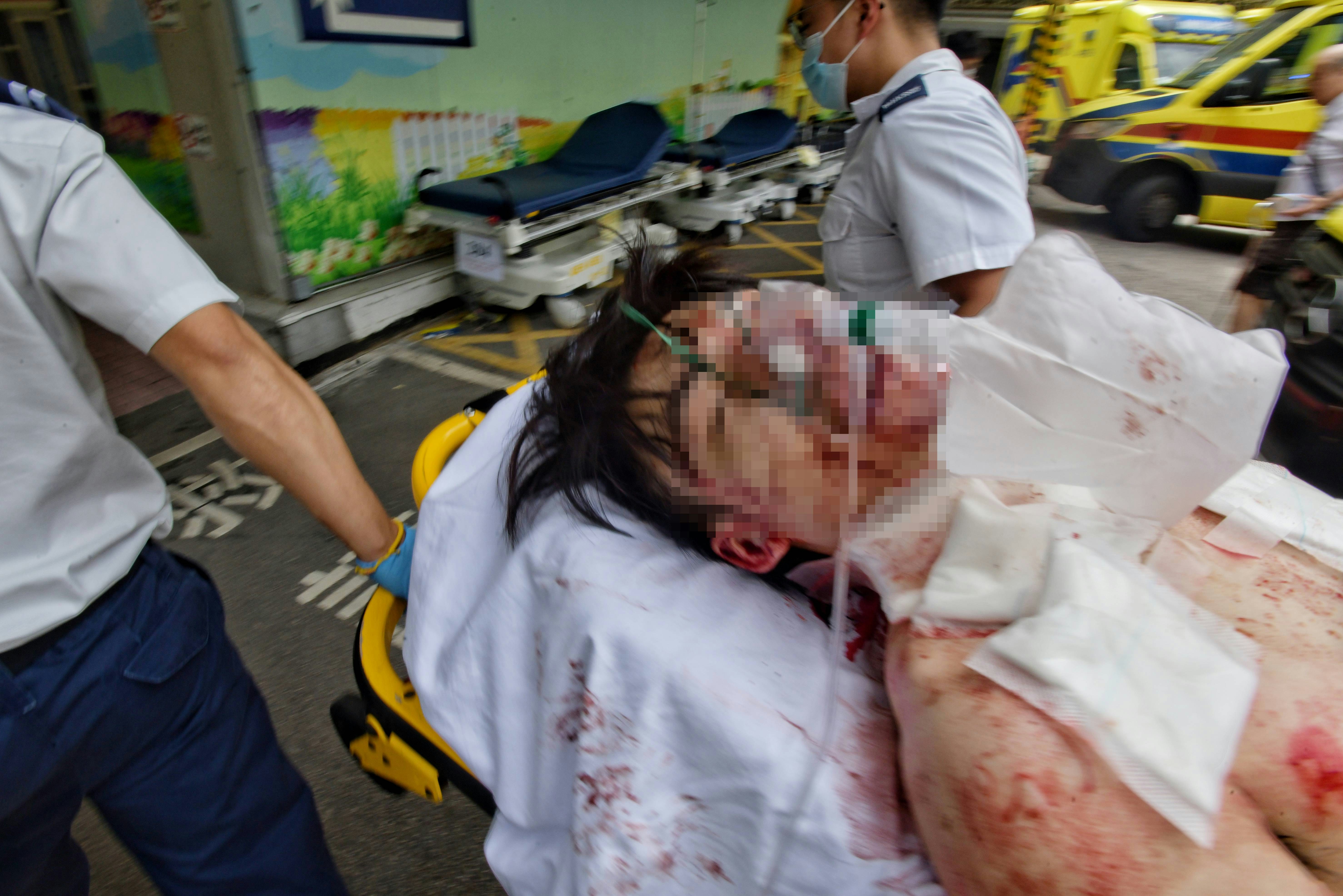 兩名傷者傷勢嚴重,由救護員包紮後送院。(讀者提供)