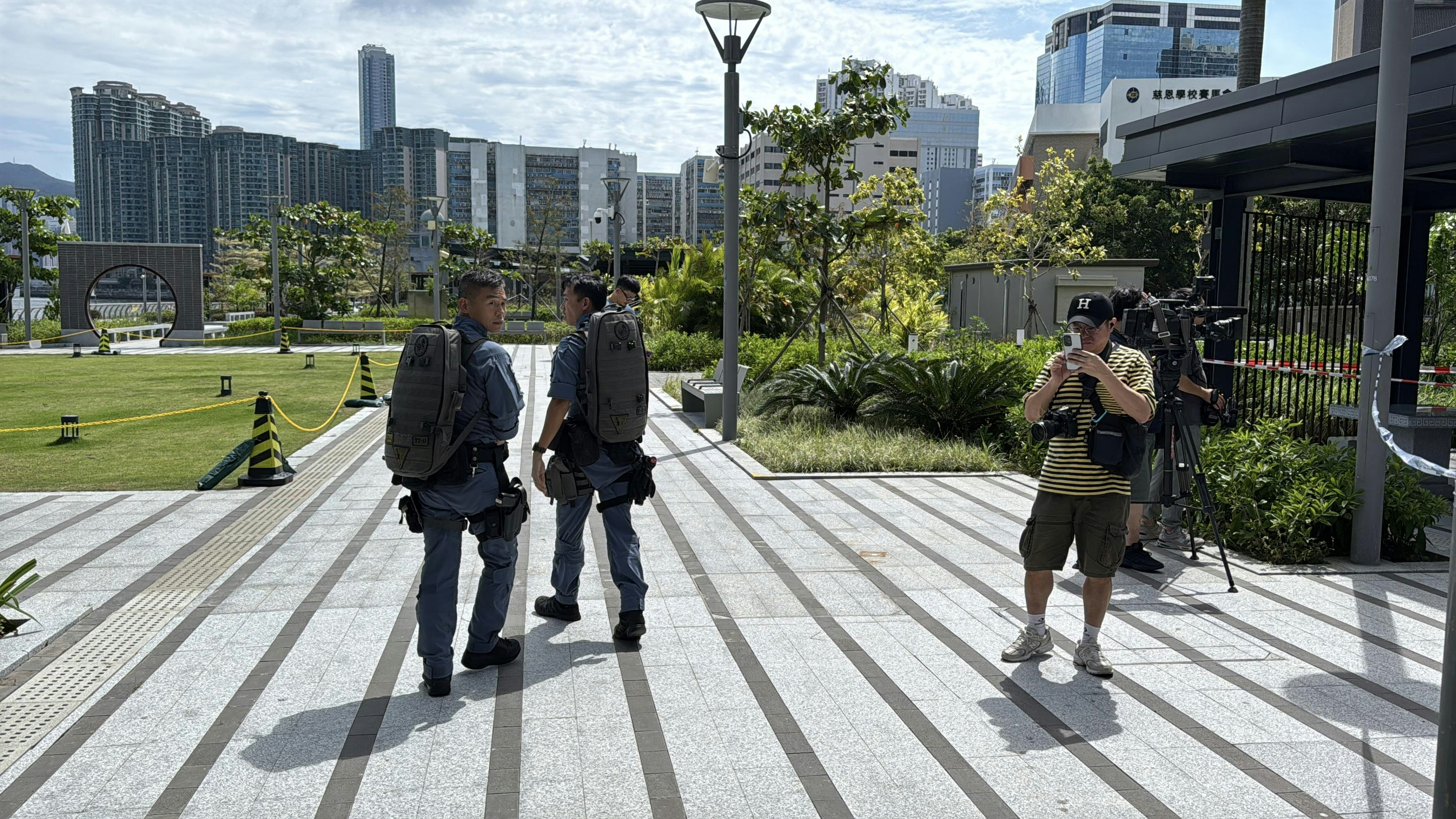 ! |3 _2 E# X& C; o) }6 Y1 K警方反恐特勤隊在場協助。(翁鈺輝攝)6 D$ V. k* q0 H7 o& E) z- I