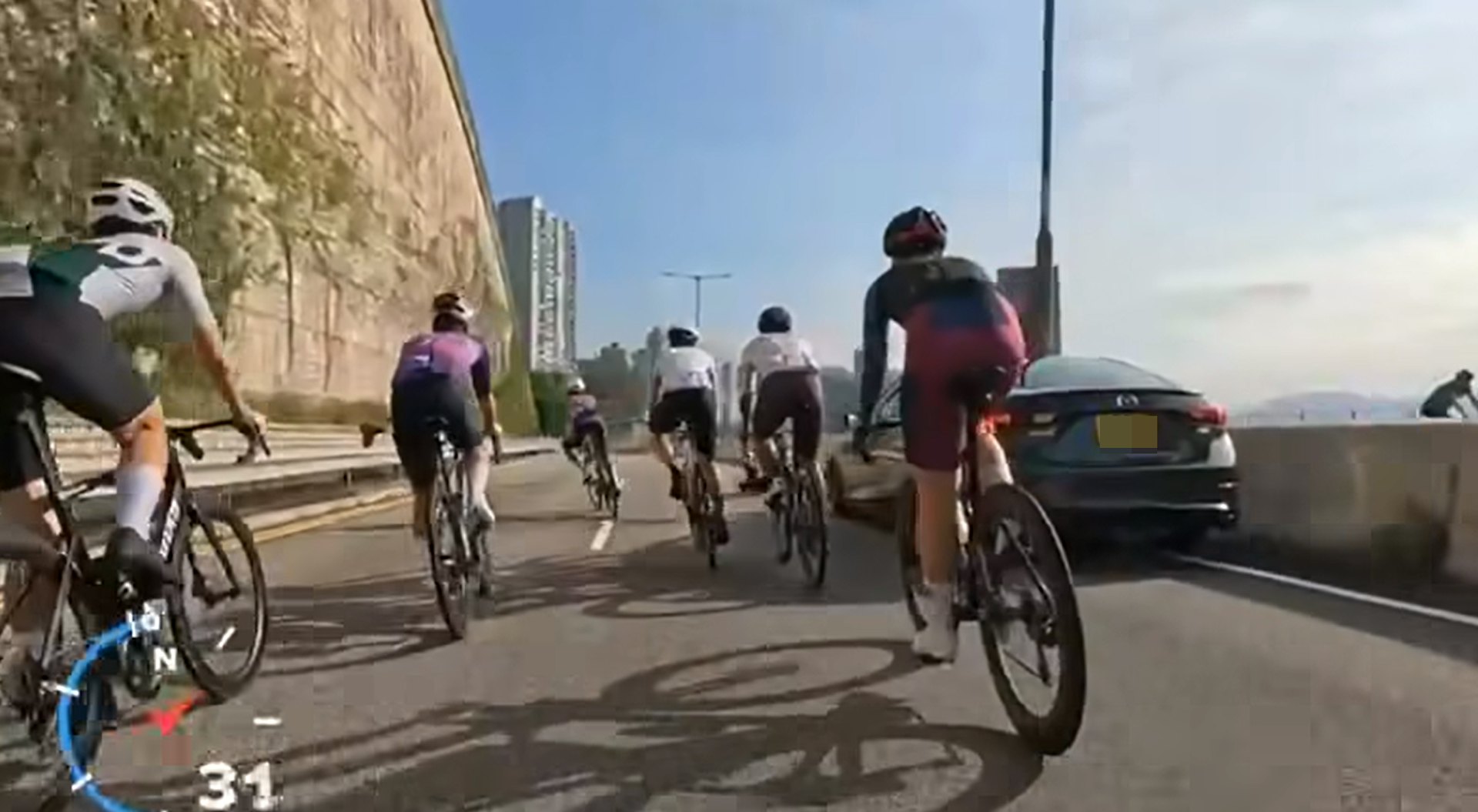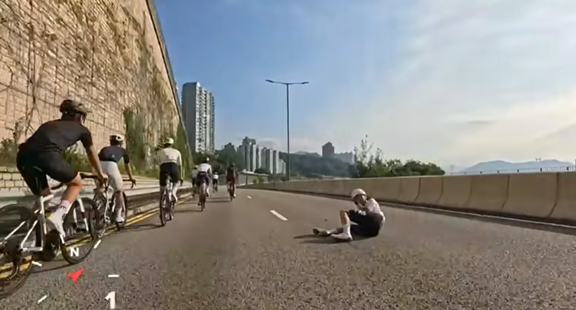青山公路昨日(1日)發生涉及單車的交通意外,事發影片在網上流傳。影片可見單車隊沿荃灣青山公路青龍頭段行駛,期間一名白衣單車手揚手示意,欲從左線切向右線,後方私家車疑收制不及,撞到單車車尾,單車人倒地。涉事踩單車的姓曹男子(21歲)手腳、額頭擦傷及扭傷,清醒由救護車送往仁濟醫院治理。
