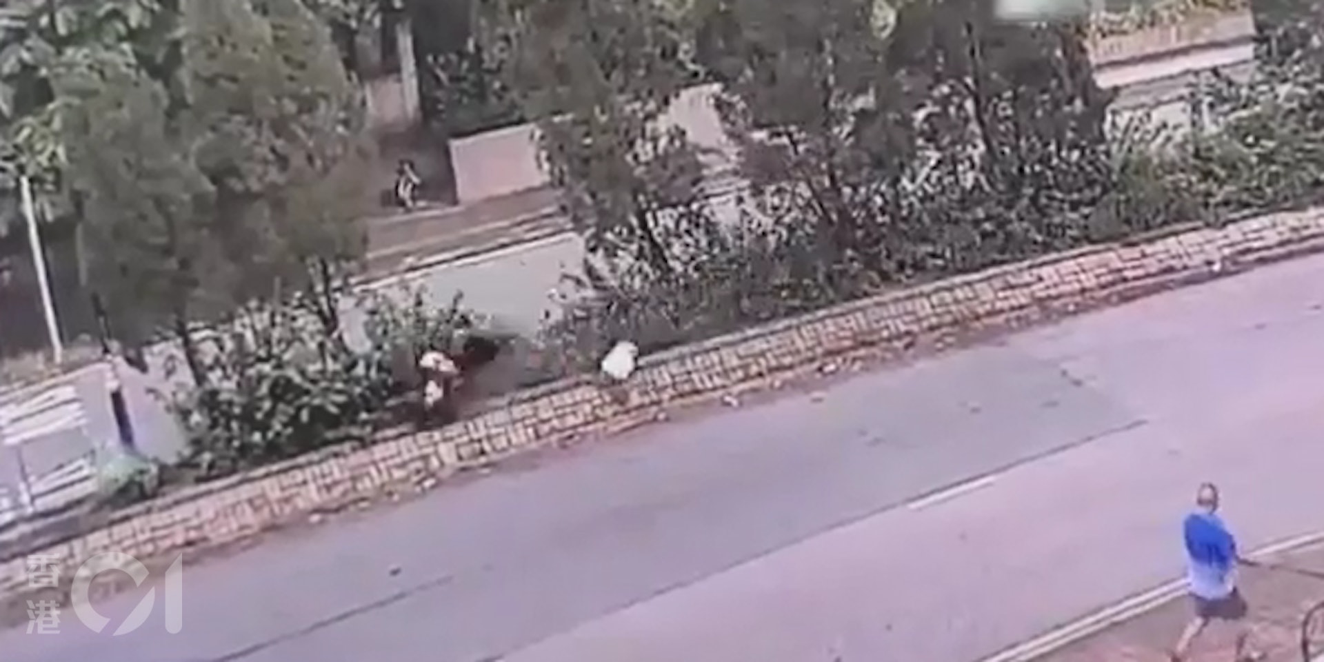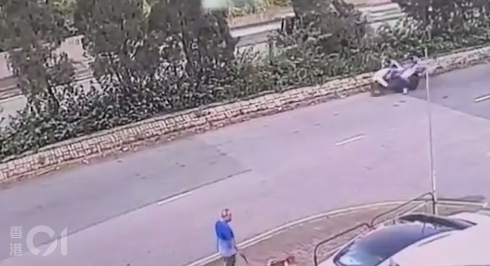 % ^% N* Q) [2 G* I* m8 s涉事電單車高速行駛,期懷疑失控挨向右邊石壆,再剷上壆。鐵騎士頭部猛撼一棵樹後,隨即「人車分離」翻滾倒地。(讀者提供影片截圖)