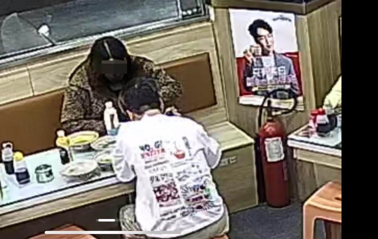 從閉路電視影片截圖見到,該對男女對座而食,女方束長髮,穿花紋長袖衣服,男方則短髮,穿上白色衣服,桌上留下至少4隻空碟,另有多樽飲品。tvb now,tvbnow,bttvb4 Z; K8 o# D! {( w1 E