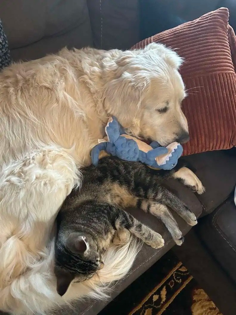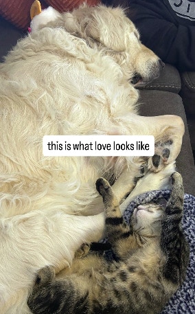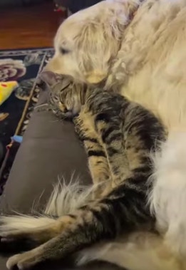 【這隻金毛犬已經9歲了,平時情緒很沉悶。但是主人領養了一隻小貓後,牠又變得開朗起來。】(IG@seniorboybruce)
