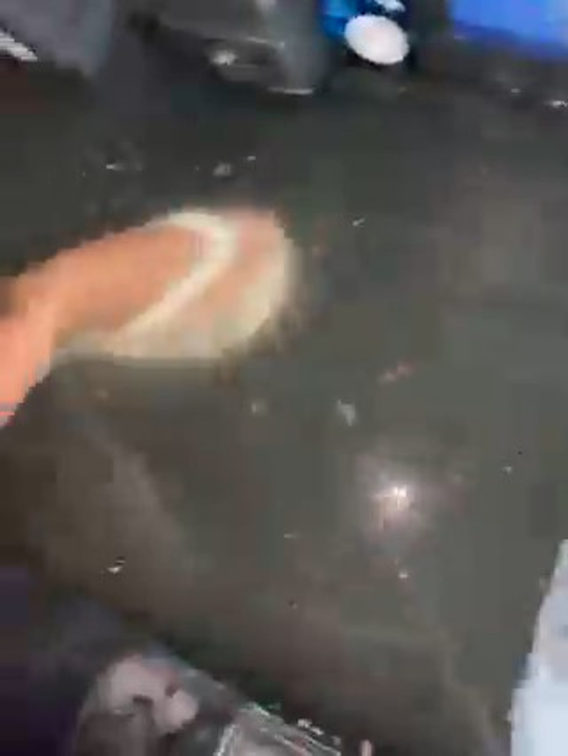 1條影片今午在網絡上瘋傳,從16秒的片段可見,一輛的士在馬路上被水圍困,污水不斷從車門湧進內,車廂內亦已充滿積水,水位至少浸過腳踝。其中1名女乘客需脫鞋蹲在座位上,以免污水弄濕雙腳,更有1把女聲一邊飲泣一邊拍片稱「而家浸到咁樣啦,張櫈都濕晒啦」、「濕晒啦濕晒啦」。另有1把相信是司機的男聲正打電話報警求助,稱「3個人連埋司機」正受困。