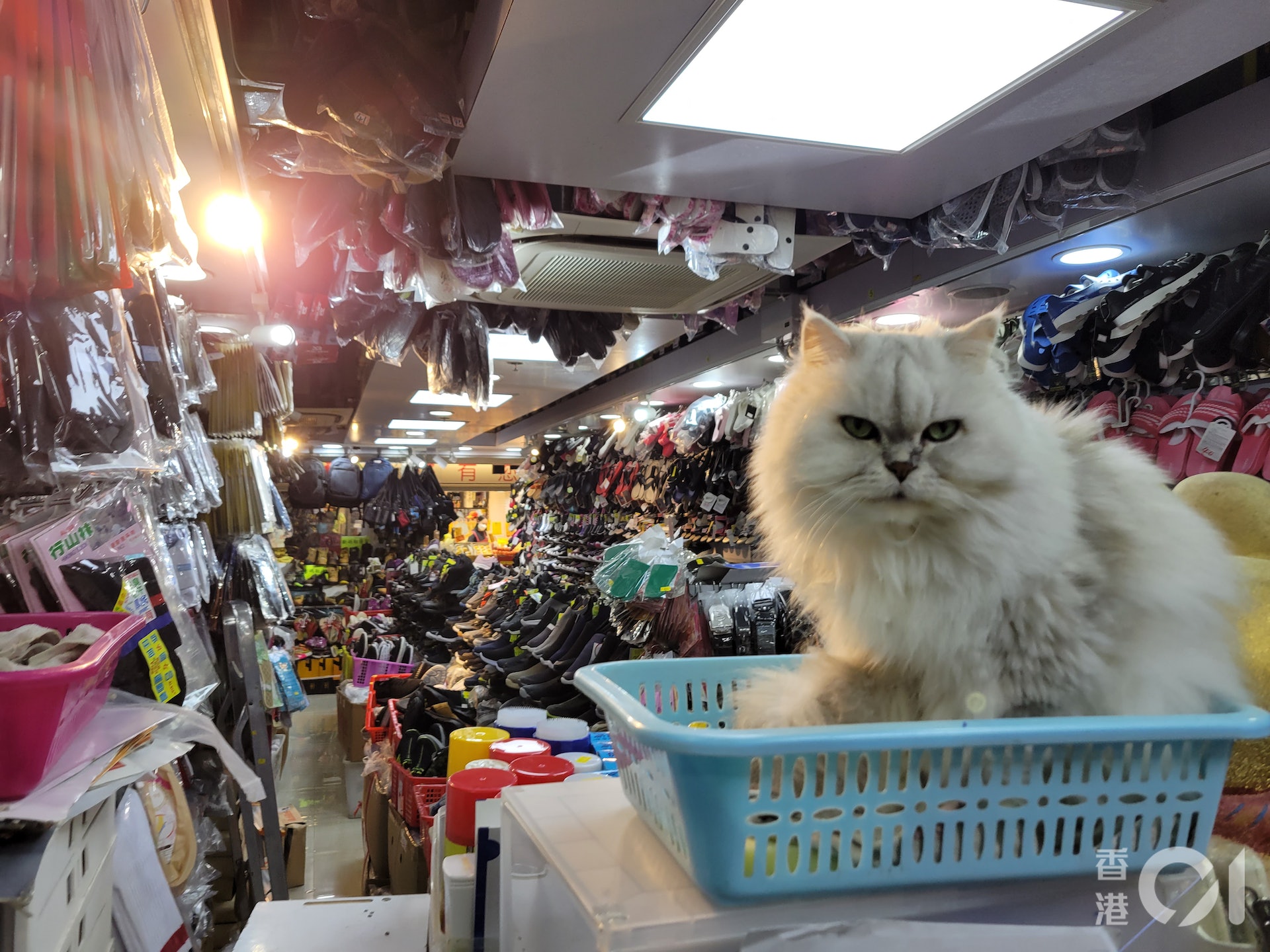 鞋舖負責人葉小姐表示,由於店內有3隻「貓店長」,所以老鼠不敢入店搗亂。(蔡正邦攝)