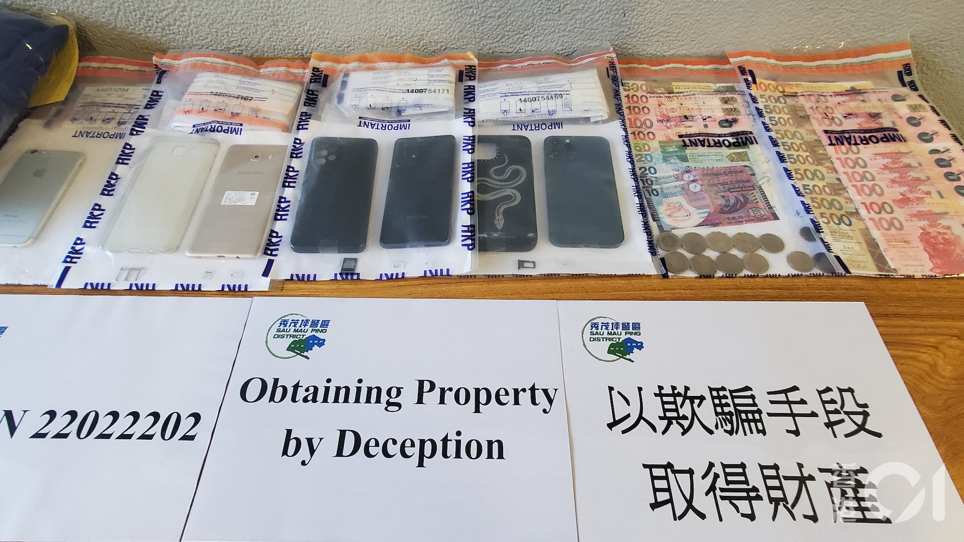 . @% }9 E, y/ G) N% E" b! Q D警方在其中一名疑犯身上檢獲全數$7千元贓款。(王譯揚攝)