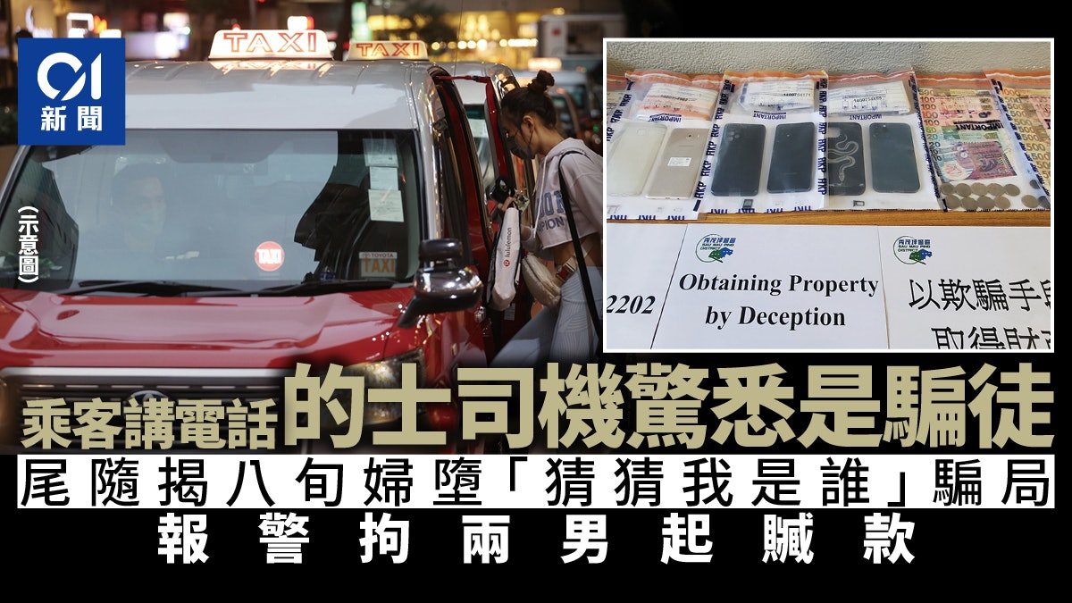 一名熱心的士司機載客途中,聽到乘客的電話內容,察覺乘客竟是一名電話騙案騙徒,準備前往目的地,與遇騙婆婆交收。司機當機立斷,立即報警。兩名有三合會背景的騙徒被趕至的警員拘捕,人贓並獲,成功阻止了一宗騙案發生。警方相信,有關「猜猜我是誰」電話騙案為三合會新興的收入來源。