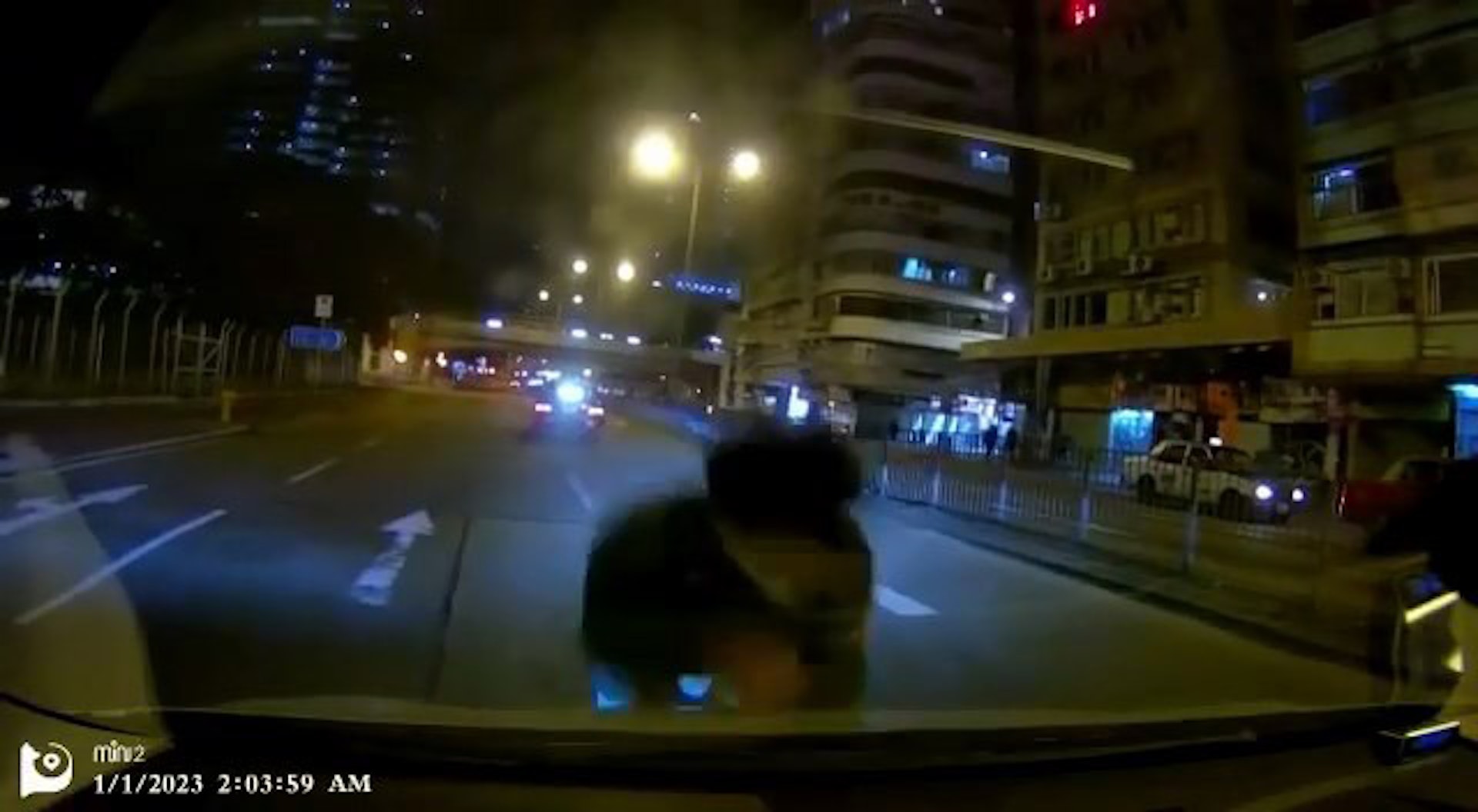 網上瘋傳一段在2023年元旦(1日)凌晨2時04分拍攝的車Cam片,當時車主駛到旺角亞皆老街近洗衣街交界時,突然有名男子跳向車頭,裝作是被車撞倒,嚇倒車內眾人。車主在恐慌中未反應過來之際,該男人竟然開始自轉滾地,令人哭笑不得,他不斷向左轉轉足分半鐘,轉了68個圈後在車頭前方休息一下,17秒後又再次轉,今次則向右轉。期間對面線有救護車經過,見狀隨即繞路到事發現場,救護員問車主:「你哋頭先有冇撞到佢㗎?」,車主回應:「梗係無撞佢啦!」救護員便上前向涉事男子查詢狀況,該男子便站起來自行離開,車主亦駛車離去。