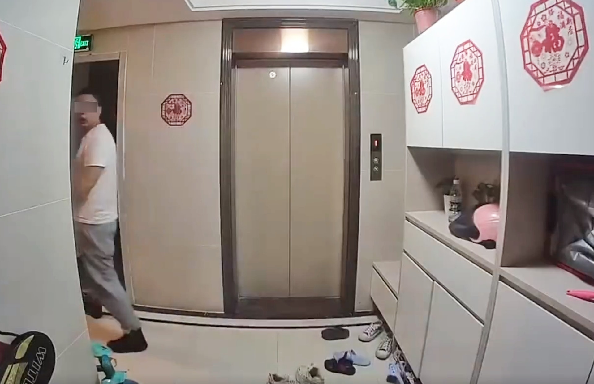 $ W' v/ D) B/ x' |, P, {2 t男子離開前再次望向單位門外鞋櫃的櫃頂,未知是否查看閉路電視位置。(微博影片截圖)www2.tvboxnow.com( m. f0 H8 e4 l6 Y$ n