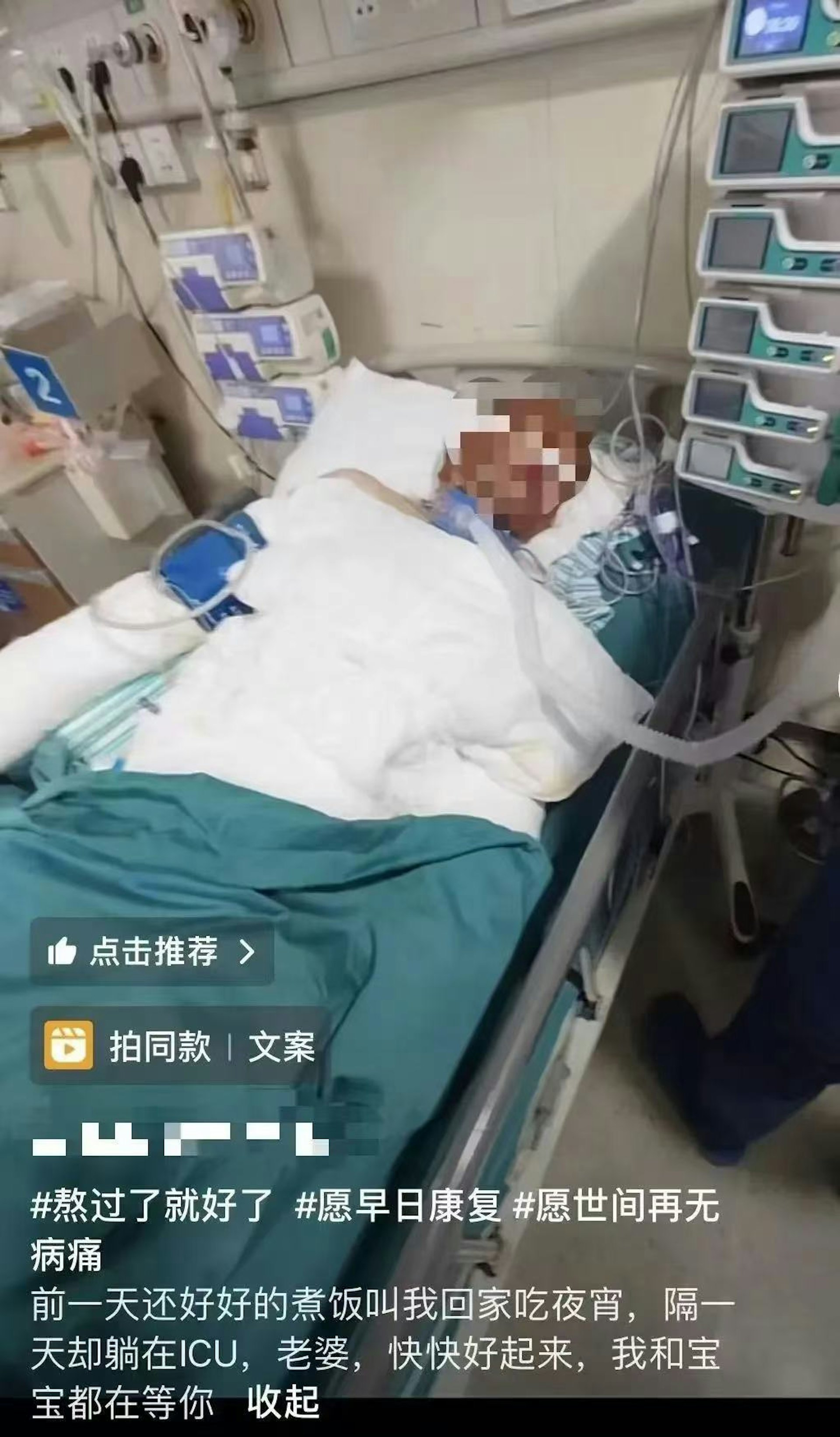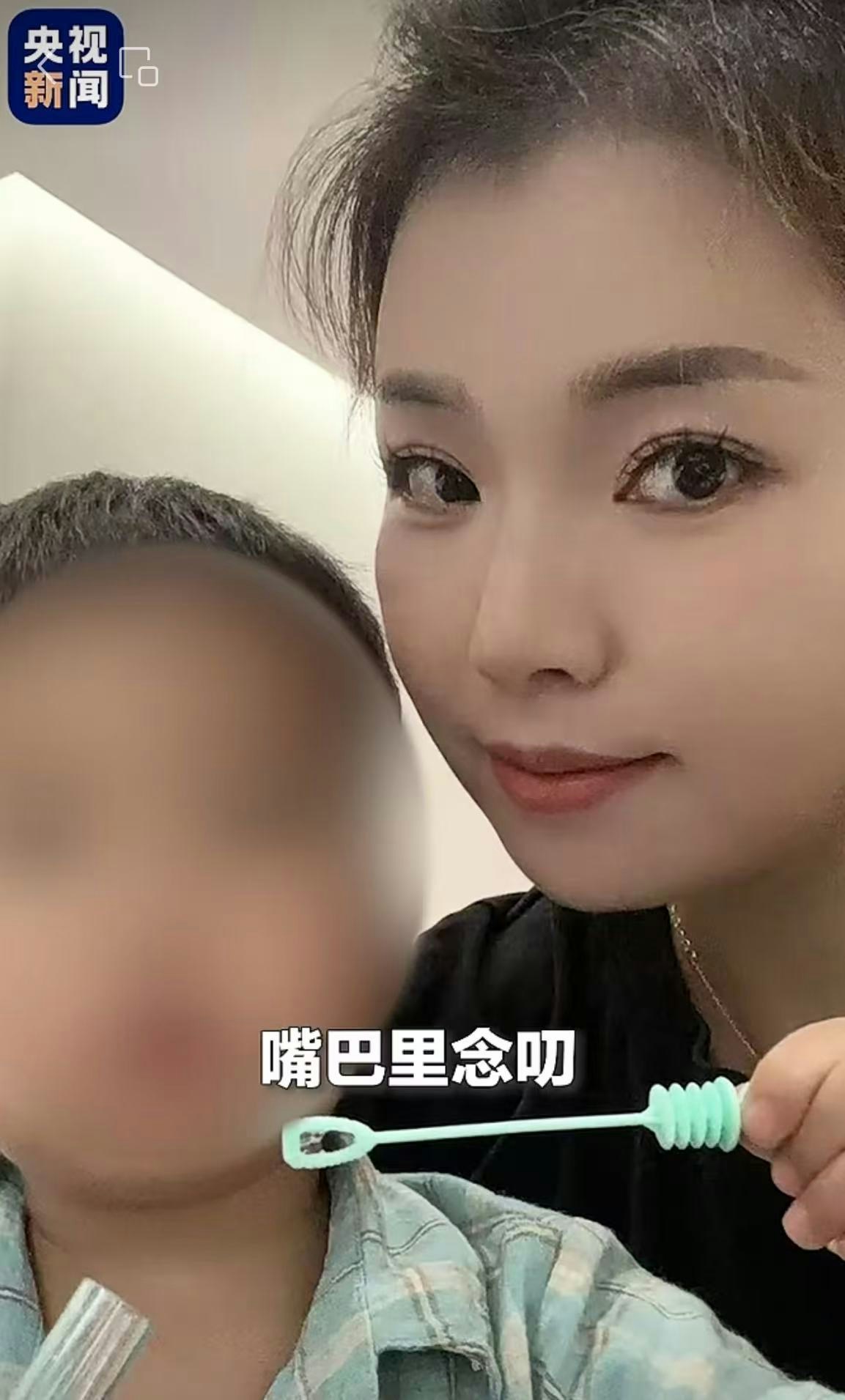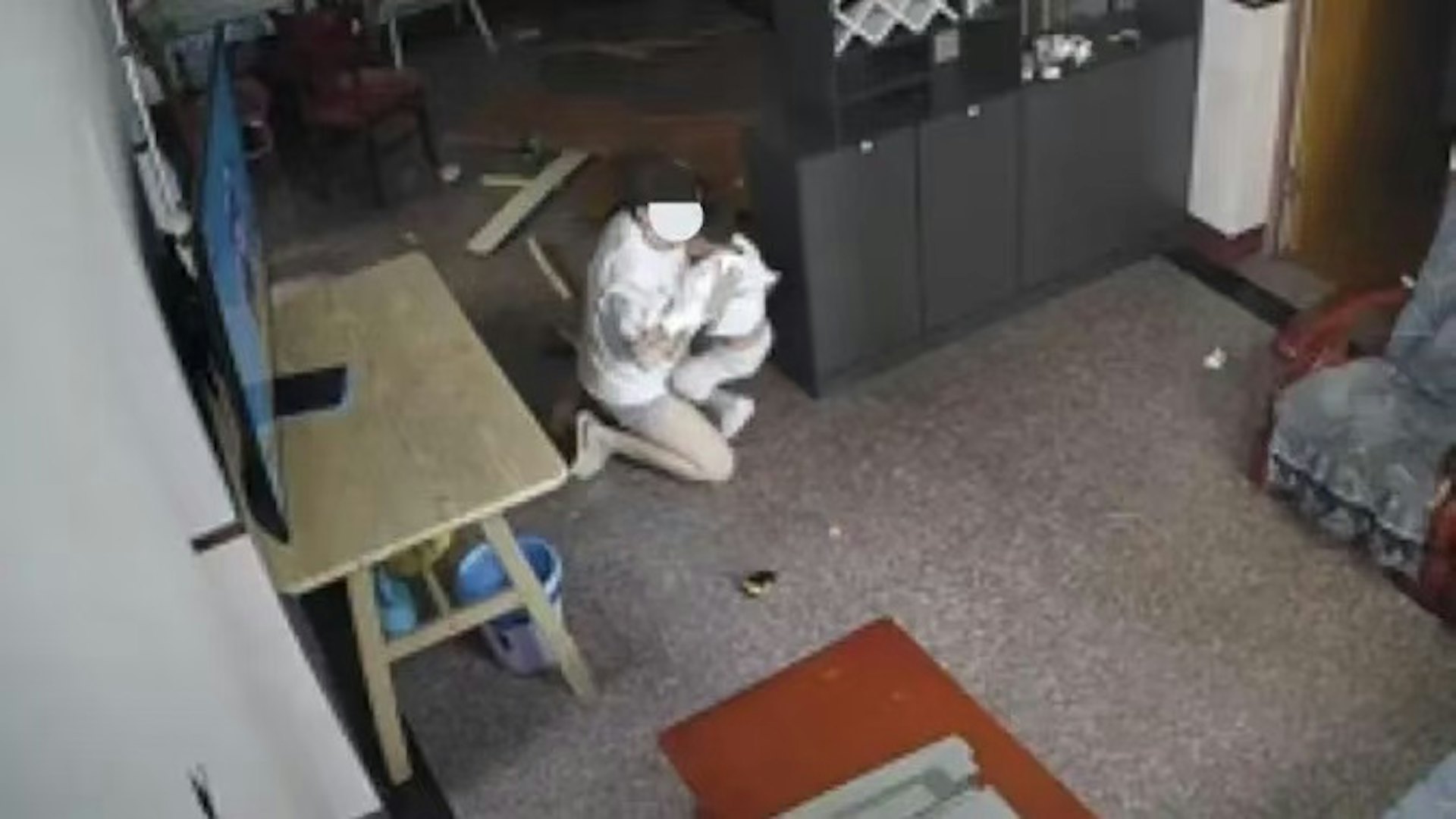 煤氣爆炸女子全身燒傷忍痛跪著抱孩子。(央視新聞)