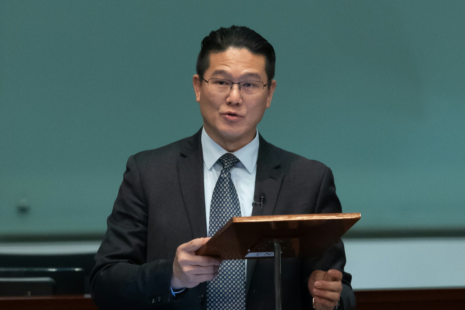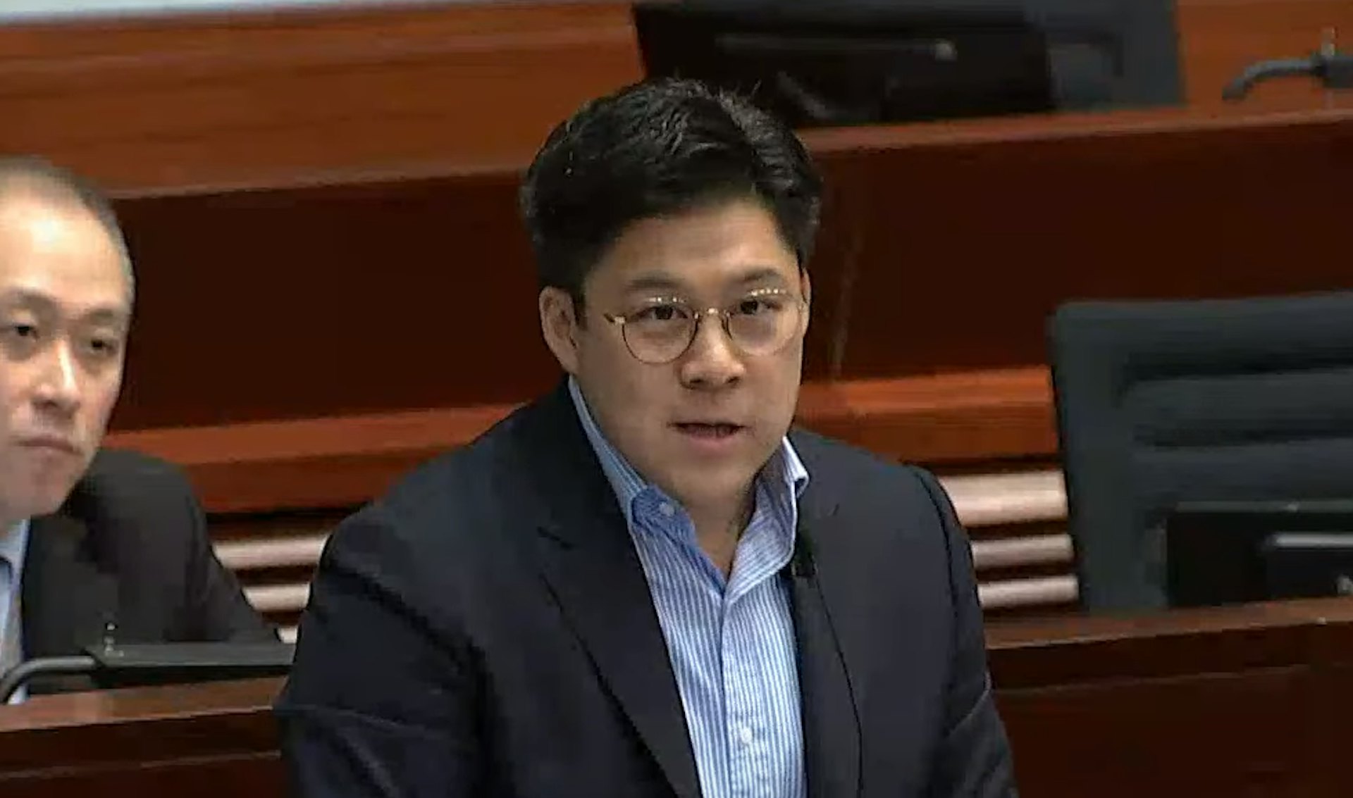 5月28日,體育、演藝、文化及出版界立法會議員霍啟剛,就公務員病假管理質詢政府。(直播截圖)' v$ y$ Q }% R d1 B. C8 V