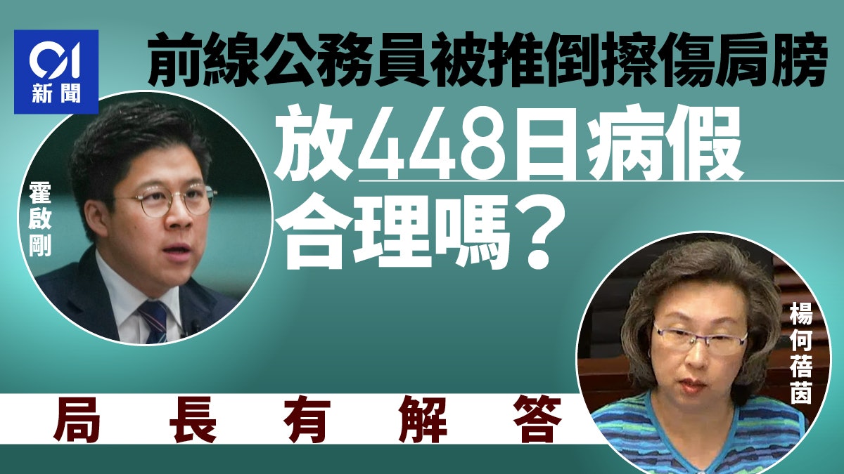 近年公務員濫放病假情況備受關注,體育、演藝、文化及出版界立法會議員霍啟剛今日(28日)在立法會質詢政府,提到有一名前線公務員被人推倒擦傷肩膀,惟請病假高達448日,多年後還向涉事市民索賠數十萬元,關注機制的合理性。4 L( c* z' h& E: z' d