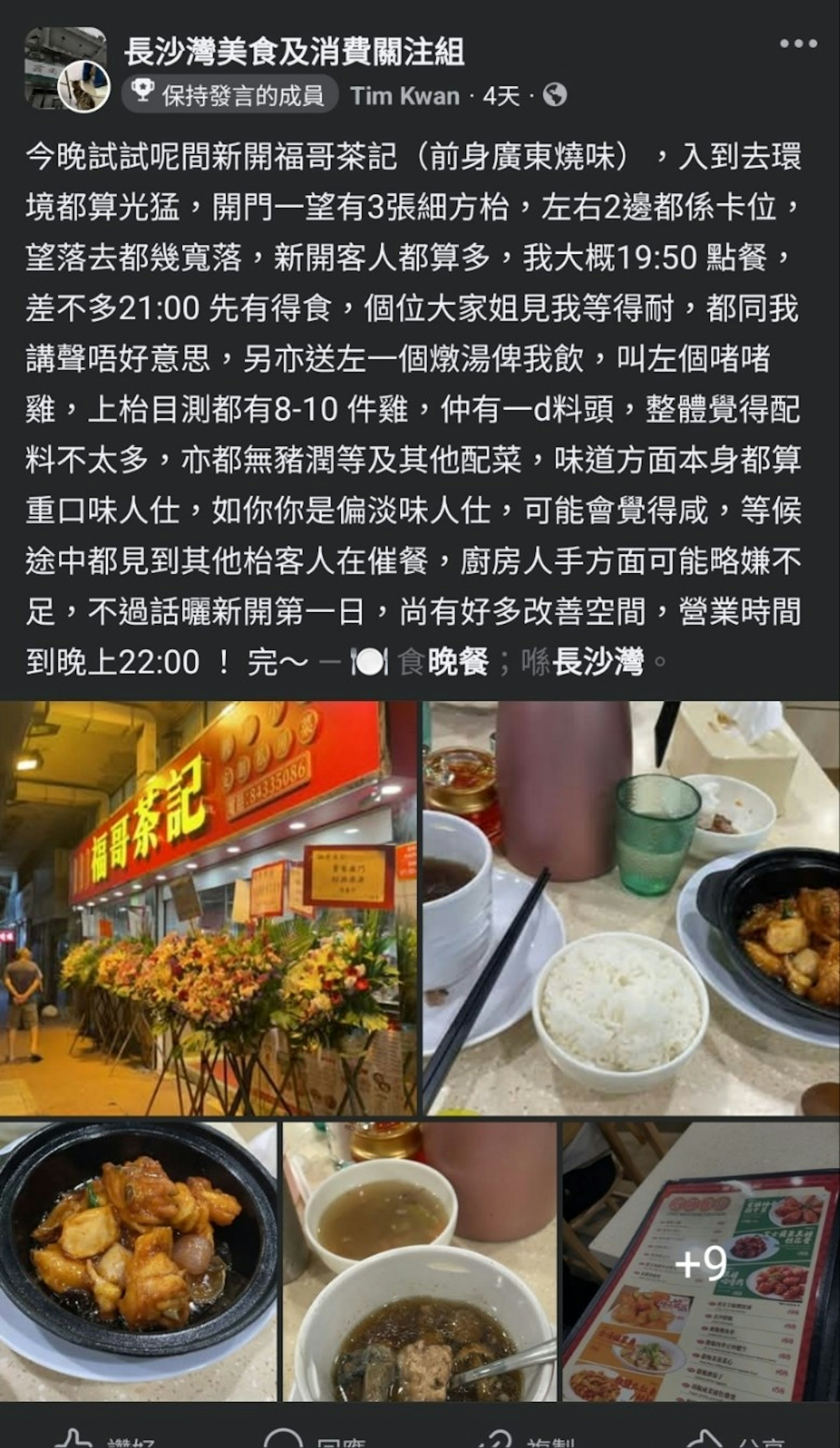 * ]/ o9 ?7 H: k% m- H$ n有街坊表示,該店上手為「廣東燒味」,因為舖租昂貴而選擇結業並轉讓,後來一位內地人接手經營,改名「福哥茶記」。有附近菜檔員工指,早前開張時有食過該餐廳的早餐,認為以該店的味道,加上價錢不便宜,不驚訝會結業。