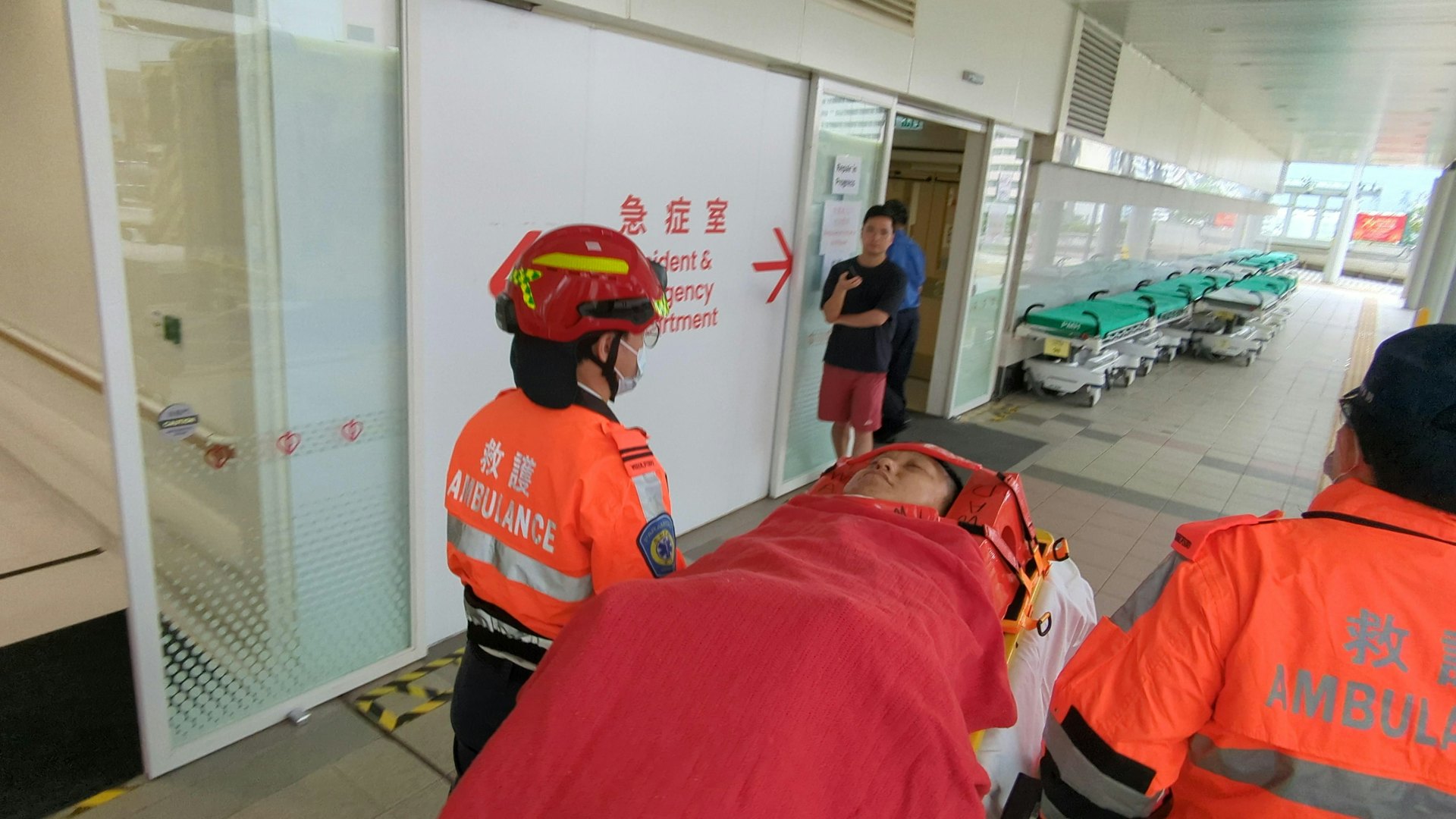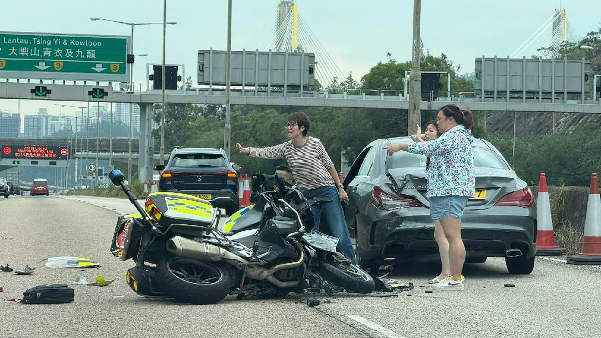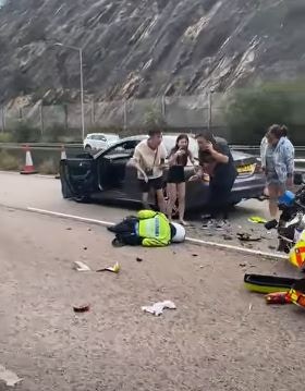救援人員到場處理,受傷警員(35歲)經急救後,由救護車送到瑪嘉烈醫院。據了解,他是新界南交通部巡邏小隊警長,他左手前臂骨折、第3及4節椎骨骨折及盆骨腫痛。平治私家車20歲姓馮男司機及19歲女乘客感到頸痛,送往仁濟醫院檢查。