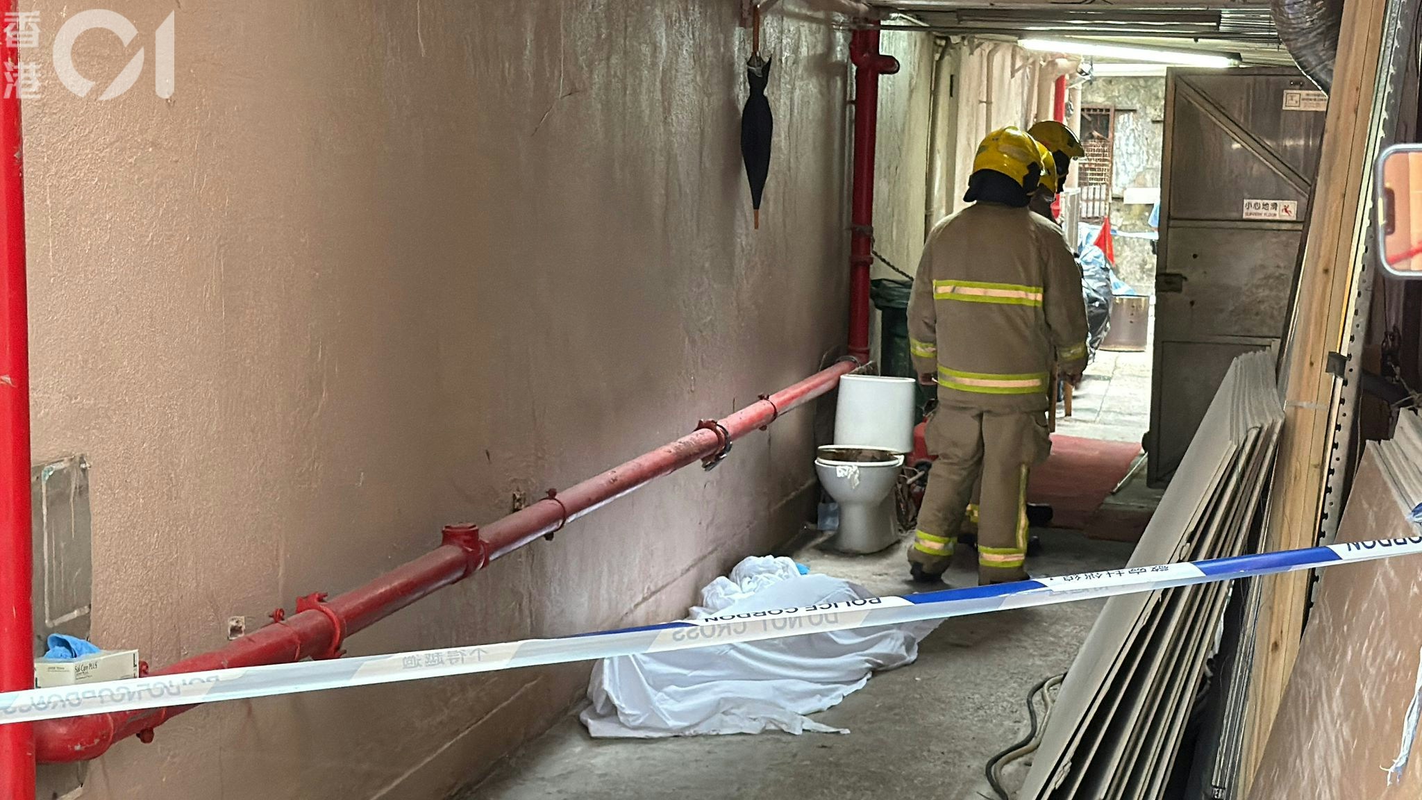 4 f9 q E# c/ Y: }) m$ s通渠公司東主在旺角砵蘭街一沙井工作期間暈倒死亡。(左朗星攝) |
