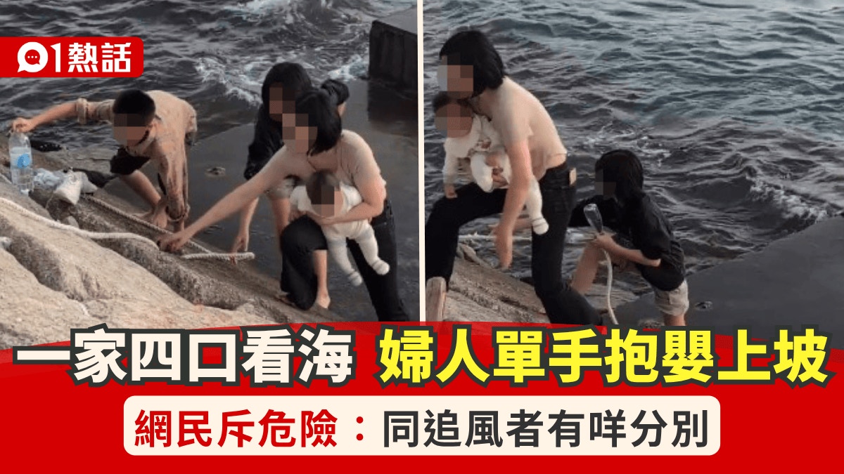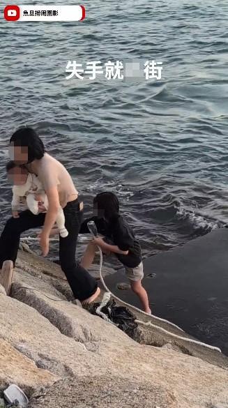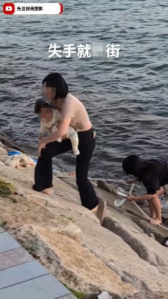 * ]* _) f2 |* f& ?為人身安全,切勿爬到岸下看海!有港男於網上發文發片公審1名婦人,他在啟德海濱目擊該婦人手抱嬰孩,揩同兩名年幼子女爬到石坡下看海,隨後眾人一度爬不上坡,女兒大呼「完了」。最終婦人單手抱嬰爬上坡,子女亦自行攀爬上來,港男斥責婦人為了看海不顧安全。