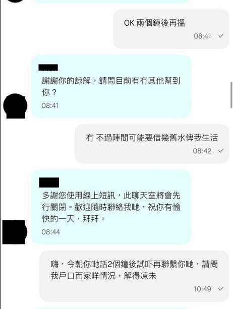 0 b7 f' j& _- k% T# n7 U公仔箱論壇2小時後樓主再找客服,但客服未有即時回應,樓主於是問「畀唔畀人生存,凍晒我啲錢,我得返$60現金」,並展示銀包圖片。約20分鐘後客服回覆,重申戶口「正在實行日常審查」,暫時未能轉款,會要求有關部門盡快處理。樓主不滿說,「盡快即係幾時,而家唔係不便啊,係我陣間要去街邊乞食啊,你哋公司有無咩係幫到我?除咗叫我等」,客服重申有關部門需時處理案件,叫樓主等候。& \9 M; T0 i# R