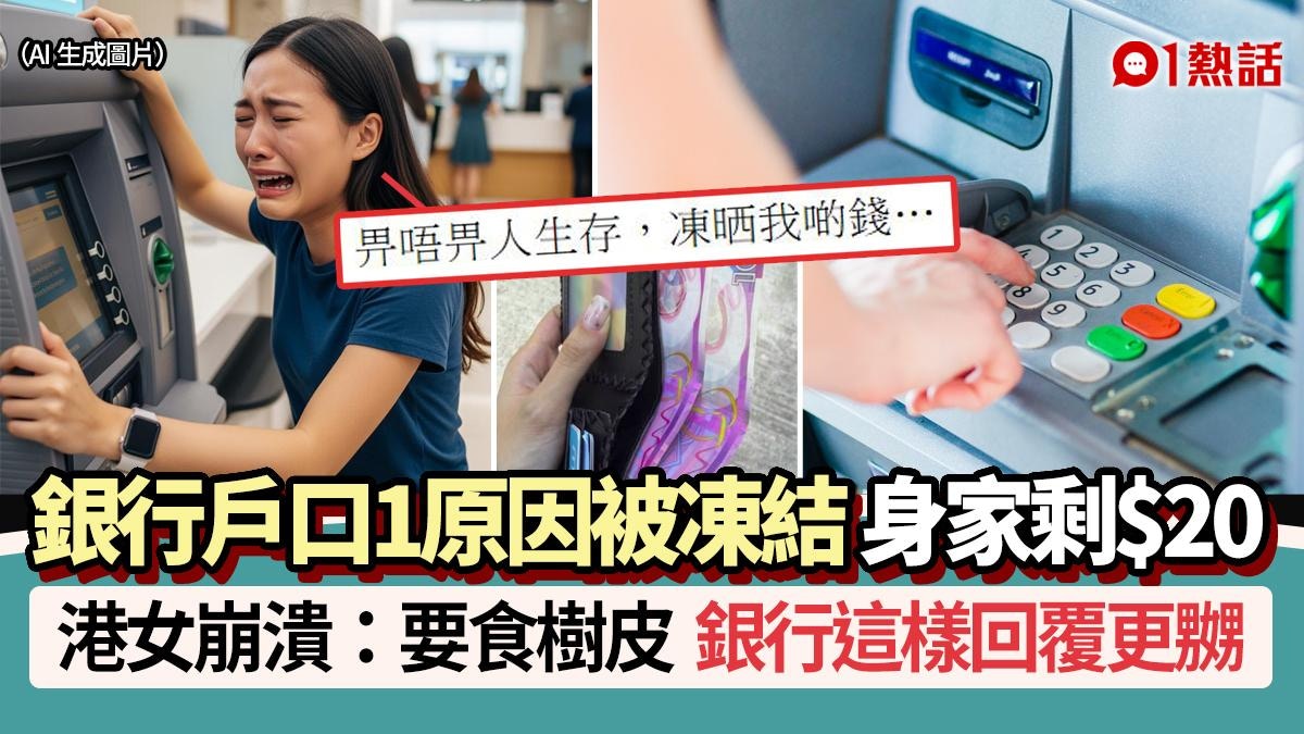 銀行存款突然被凍結審查無法動用?有港女於社交平台發文大呻,她使用某虛擬銀行約2個月,其間沒有大額款項出入,惟收取1筆5,000元工作報酬入數後數天,其戶口就突然被凍結,存款無法動用。她多次向銀行客服查詢「鬥法」,大呻「得返$20現金」、「要行獅子山返工,食樹皮」,期望盡快解封,惟銀行客服回應令她大感「傻眼」。公仔箱論壇+ \# V4 z; F, v; i