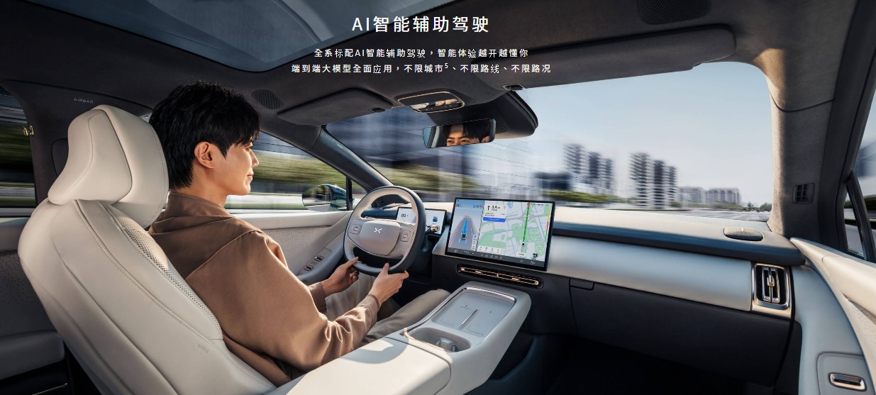 根據小鵬汽車官方網站,「小鵬P7」具備AI智能輔助駕駛,指「不限城市、不限路線、不限路況」均能運作。(小鵬汽車網站截圖)