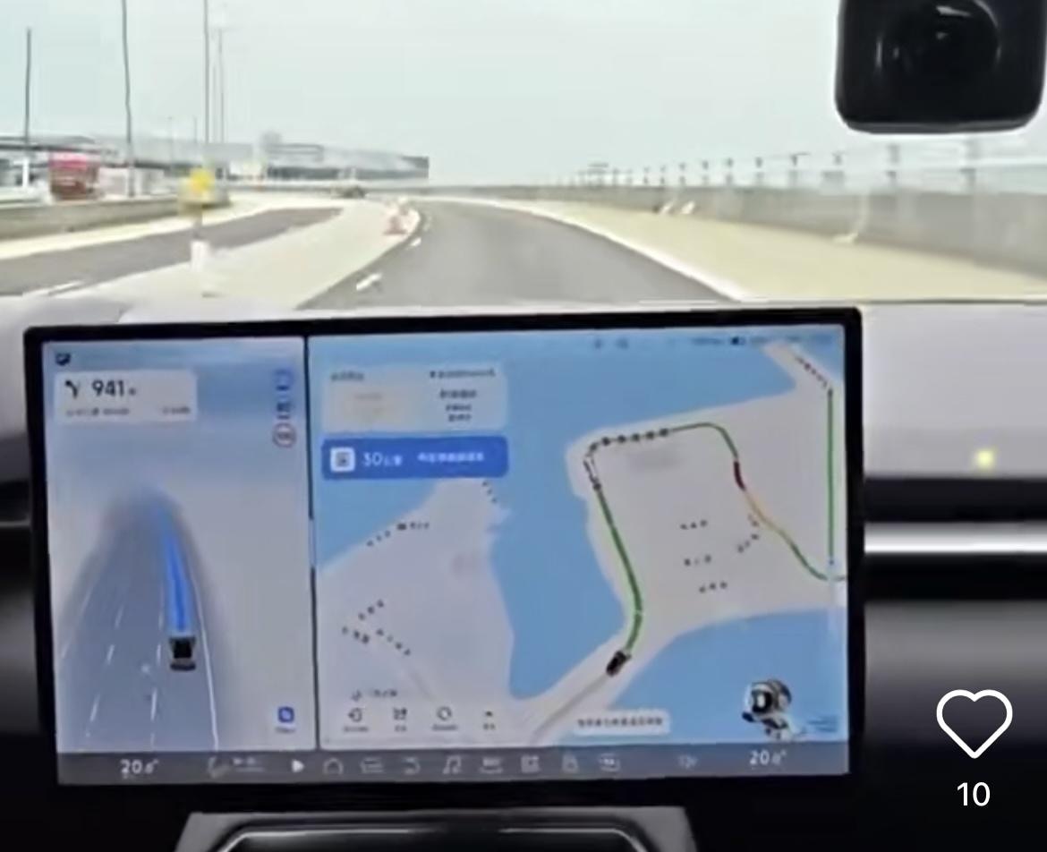 小紅書上流傳影片,一名經粵車南下於23日自駕來港的内地「小鵬P7」車主,在港珠澳大橋駕駛時使用車輛的智能駕駛系統,期間曾單手控制軚盤,更一度雙手離軚。從畫面中的地圖可見,車輛正於赤鱲角路駛向港珠澳大橋香港口岸。www2.tvboxnow.com* {/ B3 f. ?0 p% i6 [0 k